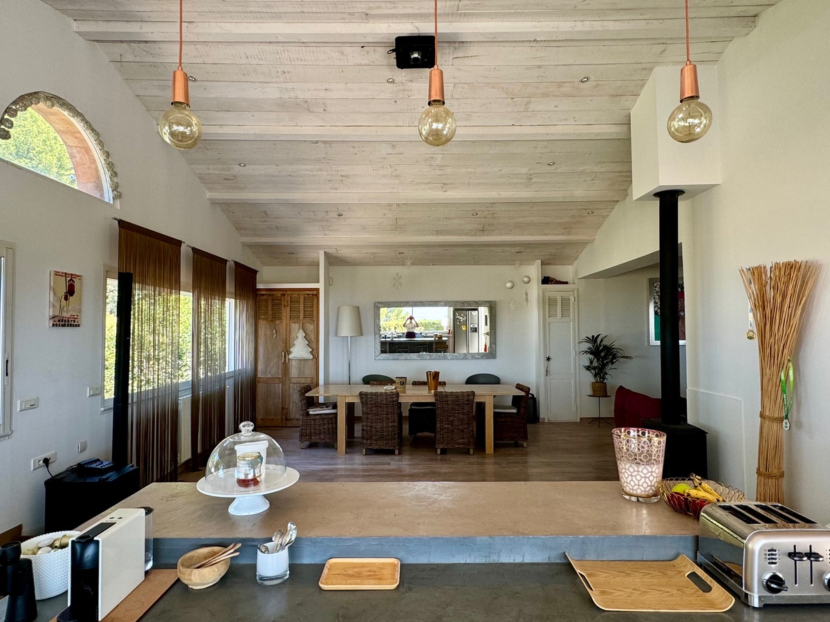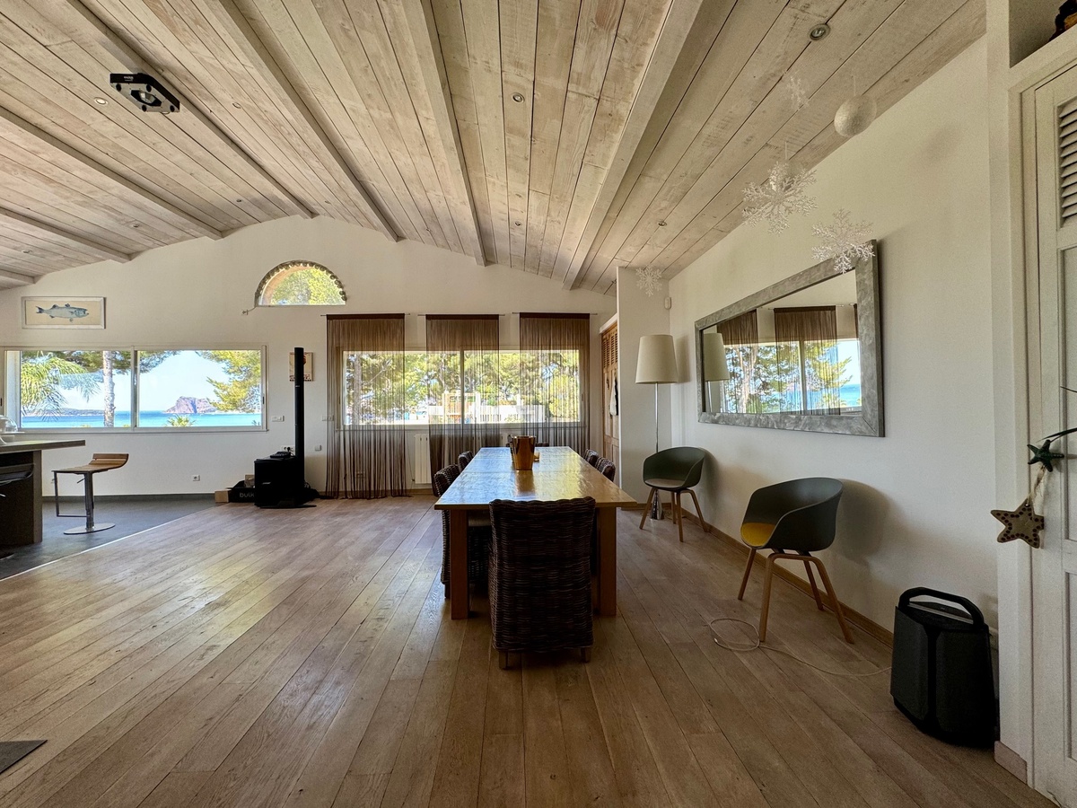 The villa’s inviting double-height living room with elevated ceilings and generous volumes opens onto a scenic terrace overlooking the sea—perfect for enjoying warm evenings and ocean breezes. Two bedrooms are conveniently located on the main level, while a charming third bedroom under the roof provides added privacy.