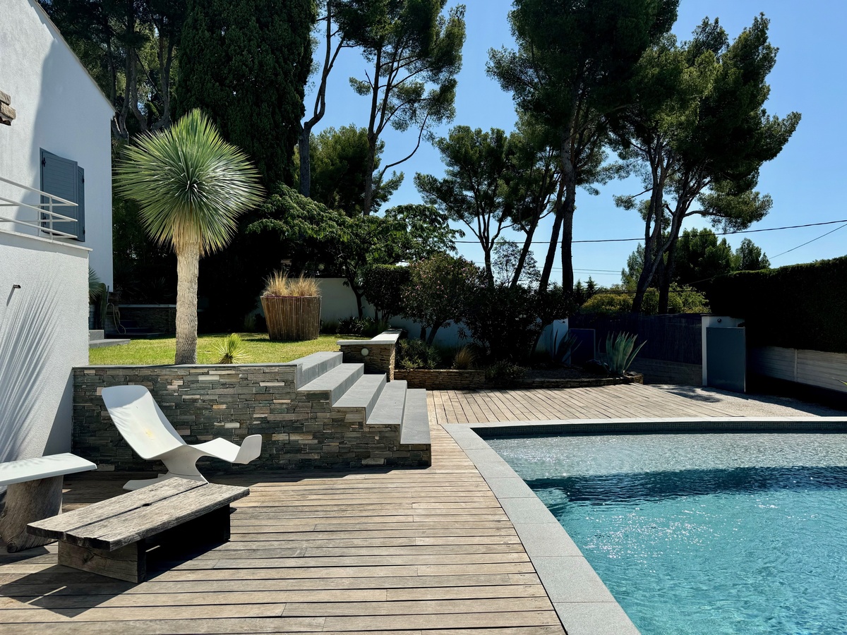 Perfectly oriented to the south and bathed in natural light throughout the day, this elegant holiday retreat is set on a generous 1,100 m2 plot and boasts approx. 170 m2 of living space. The home’s serene location and easy-living layout make it an ideal coastal residence for those seeking a relaxed yet refined lifestyle on the Provence Coast between Marseille and Toulon.