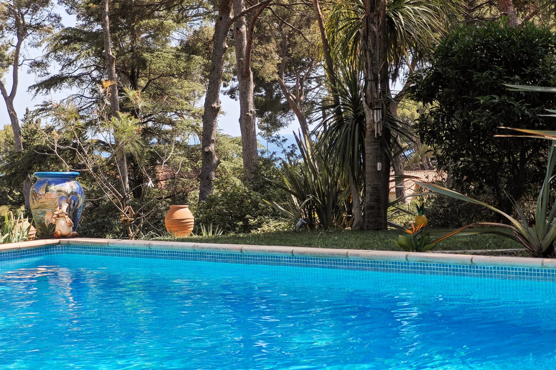 Outdoors, the swimming pool blends harmoniously into the landscape. The property creates an enchanting Mediterranean setting, combining nature, privacy, and elegance, just minutes from the port and all amenities.