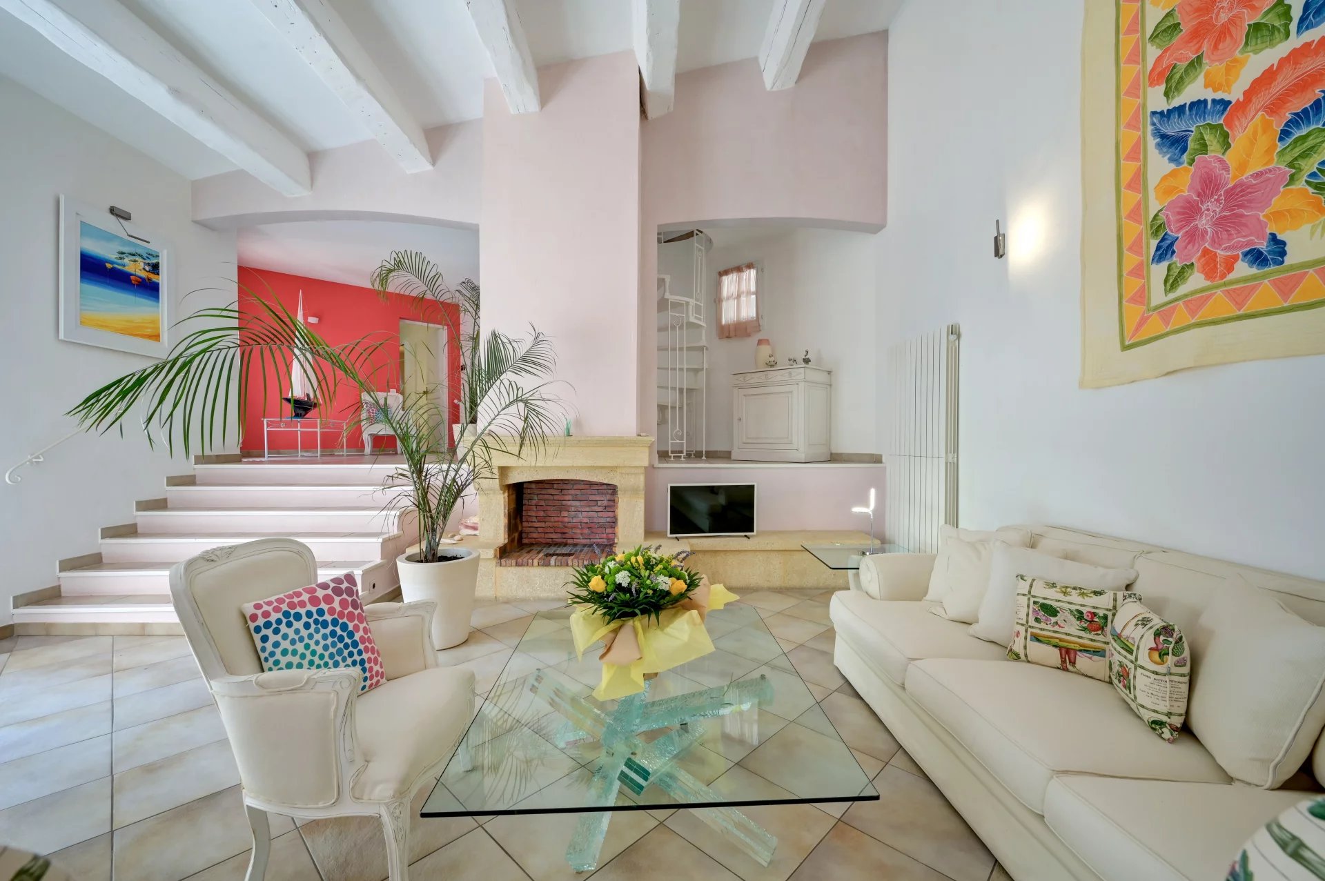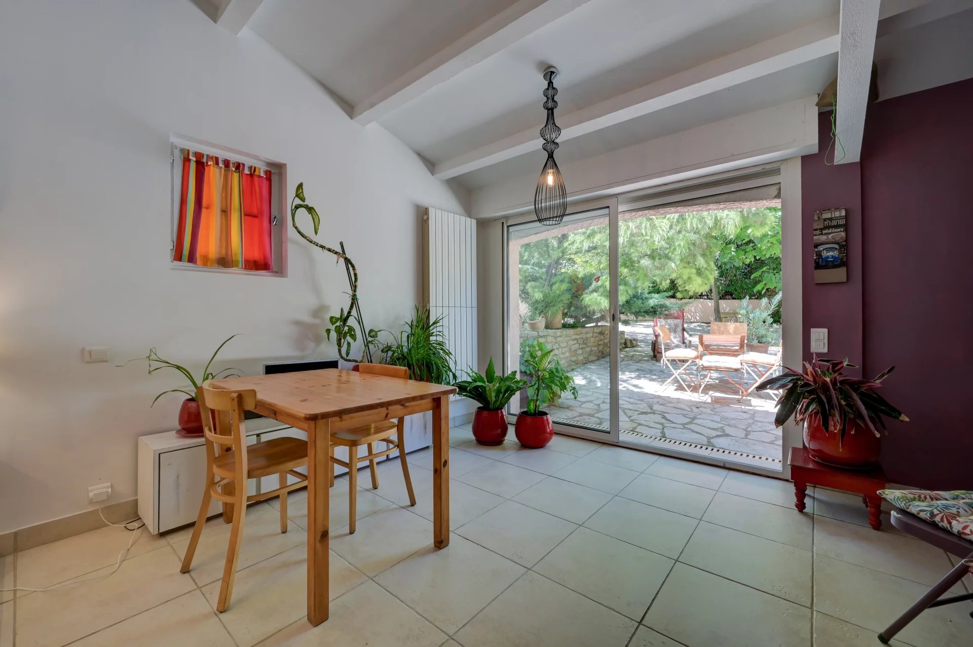 The house captivates with its elegant architecture and generous volumes. Perfectly oriented to capture the light, it comprises a spacious, bright living and dining room opening onto the garden and terraces, a welcoming bar area, a fully equipped kitchen, four bedrooms, and two bathrooms.