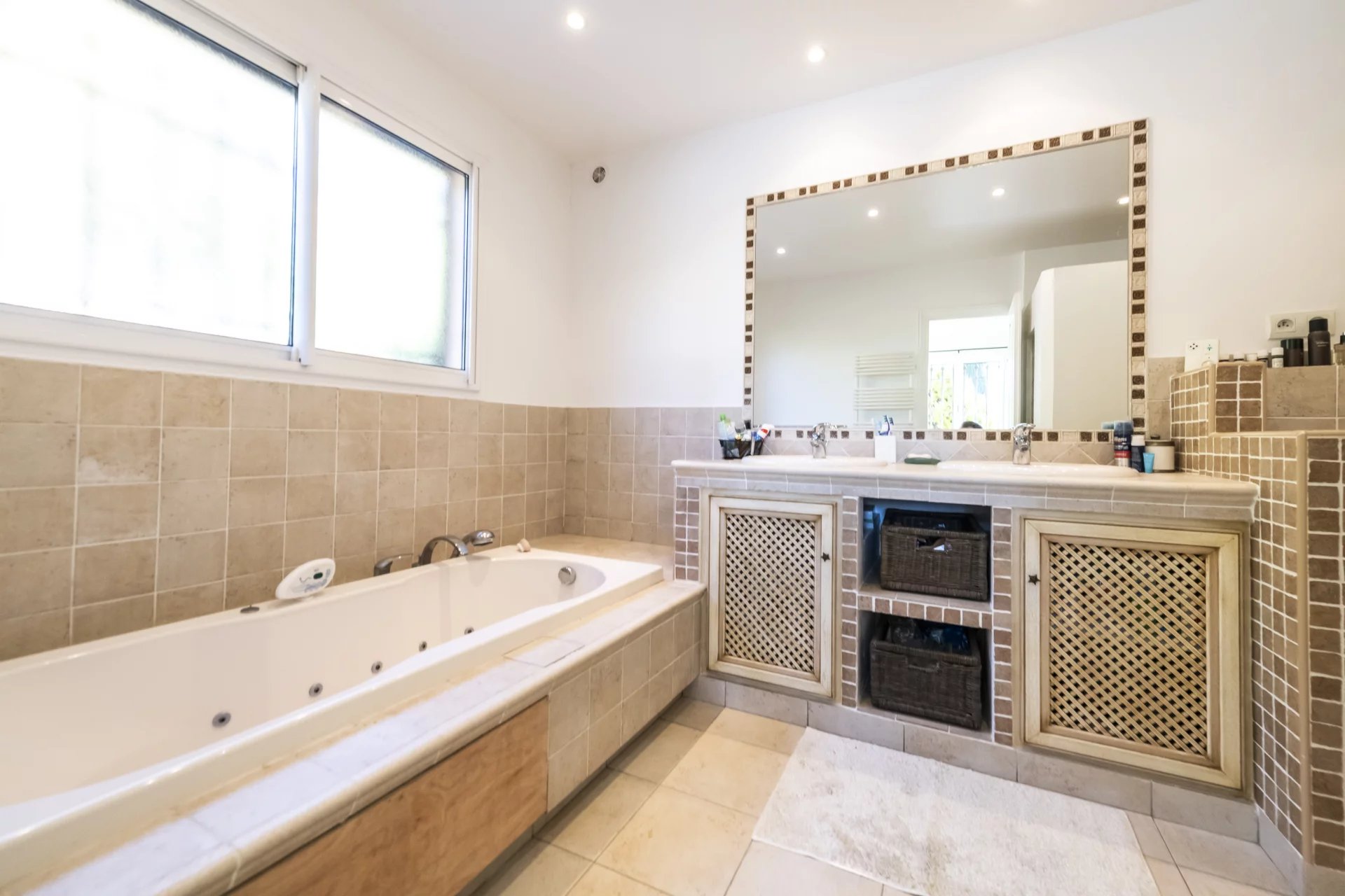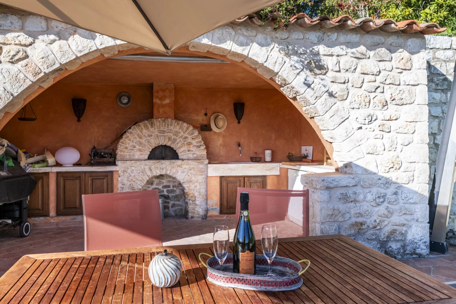 The beautifully landscaped garden of 1,850 m2 is a true haven of peace, featuring fruit trees and secluded relaxation areas. A second terrace, located in front of the pool, is perfect for entertaining, with a fully equipped summer kitchen and a wood-fired pizza oven.