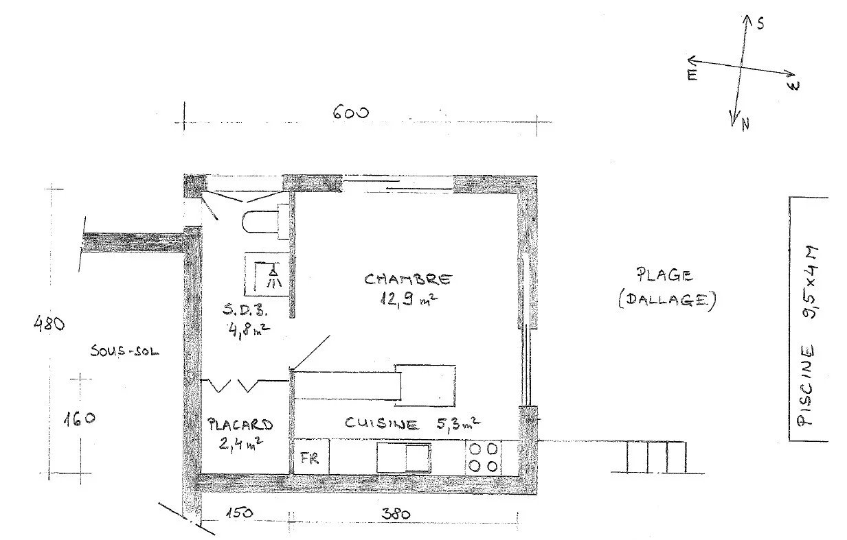 With a separate entrance from the western part of the garden, we find a studio, with equipped kitchen, shower room with WC and a 13 m2 living room. From here you have direct access to the pool and garden.