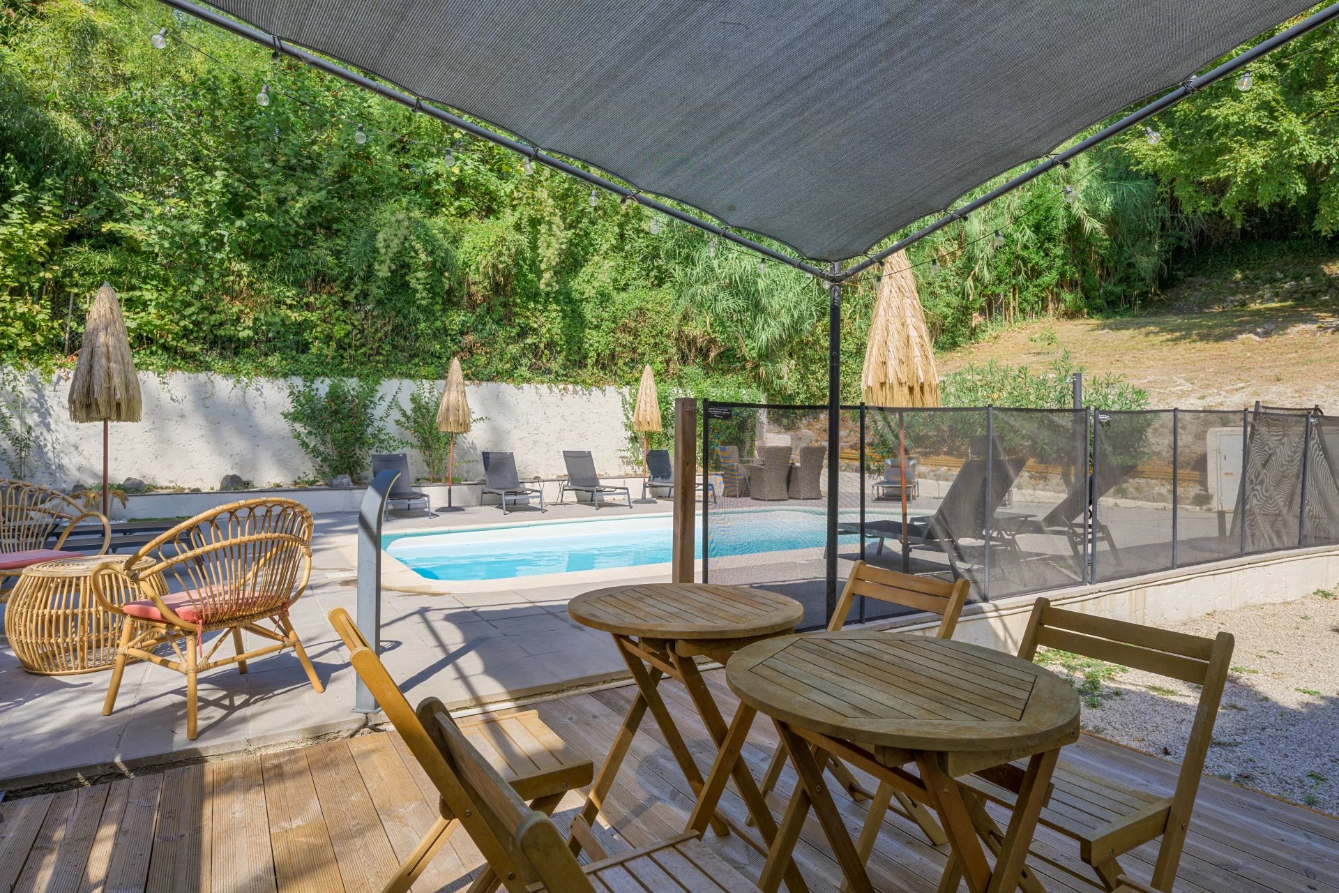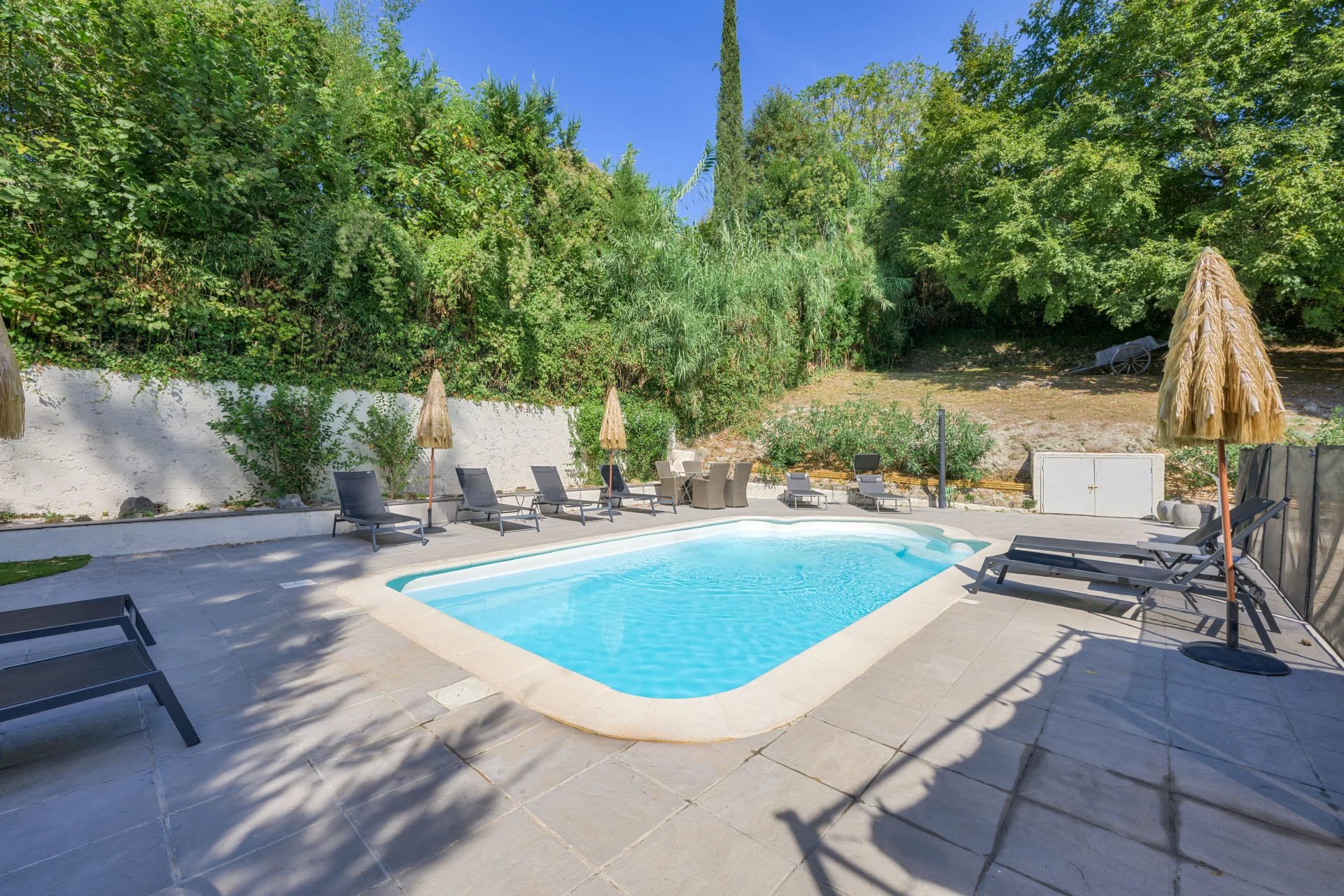 Outside, a beautiful swimming pool surrounded by a terrace invites you to relax under the sun. The carefully landscaped gardens are the perfect place to enjoy Provencal days and evenings.