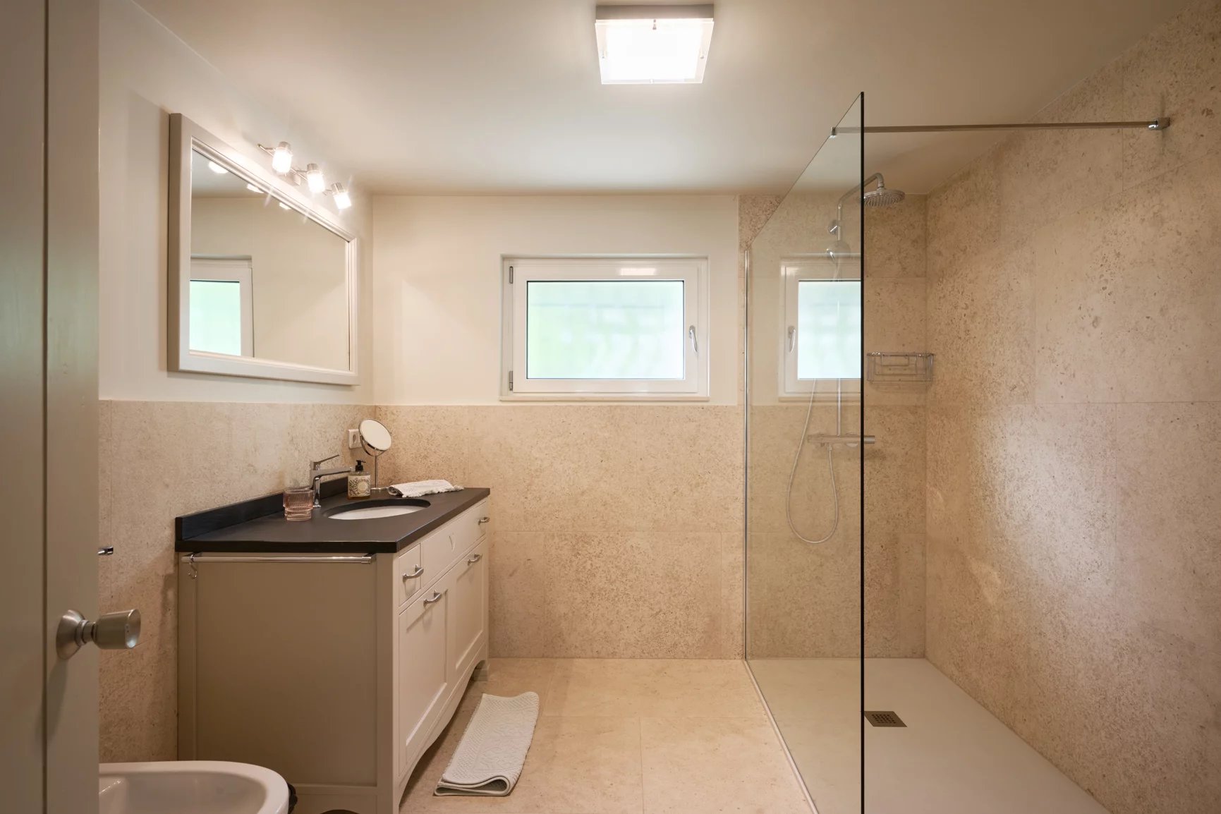 On the night side, four bedrooms, including three en-suite, and a stunning master suite with a walk-in closet, all oriented towards the sea, invite contemplation from the moment you wake up.