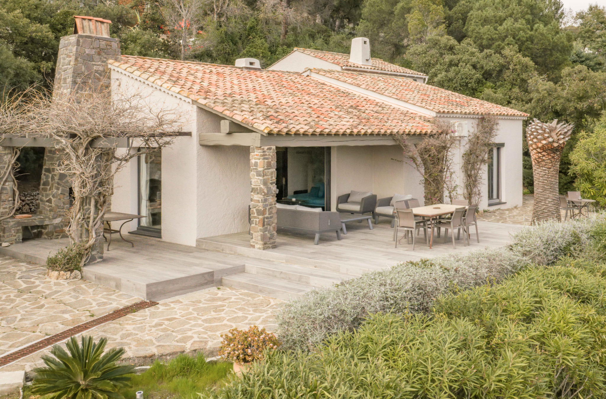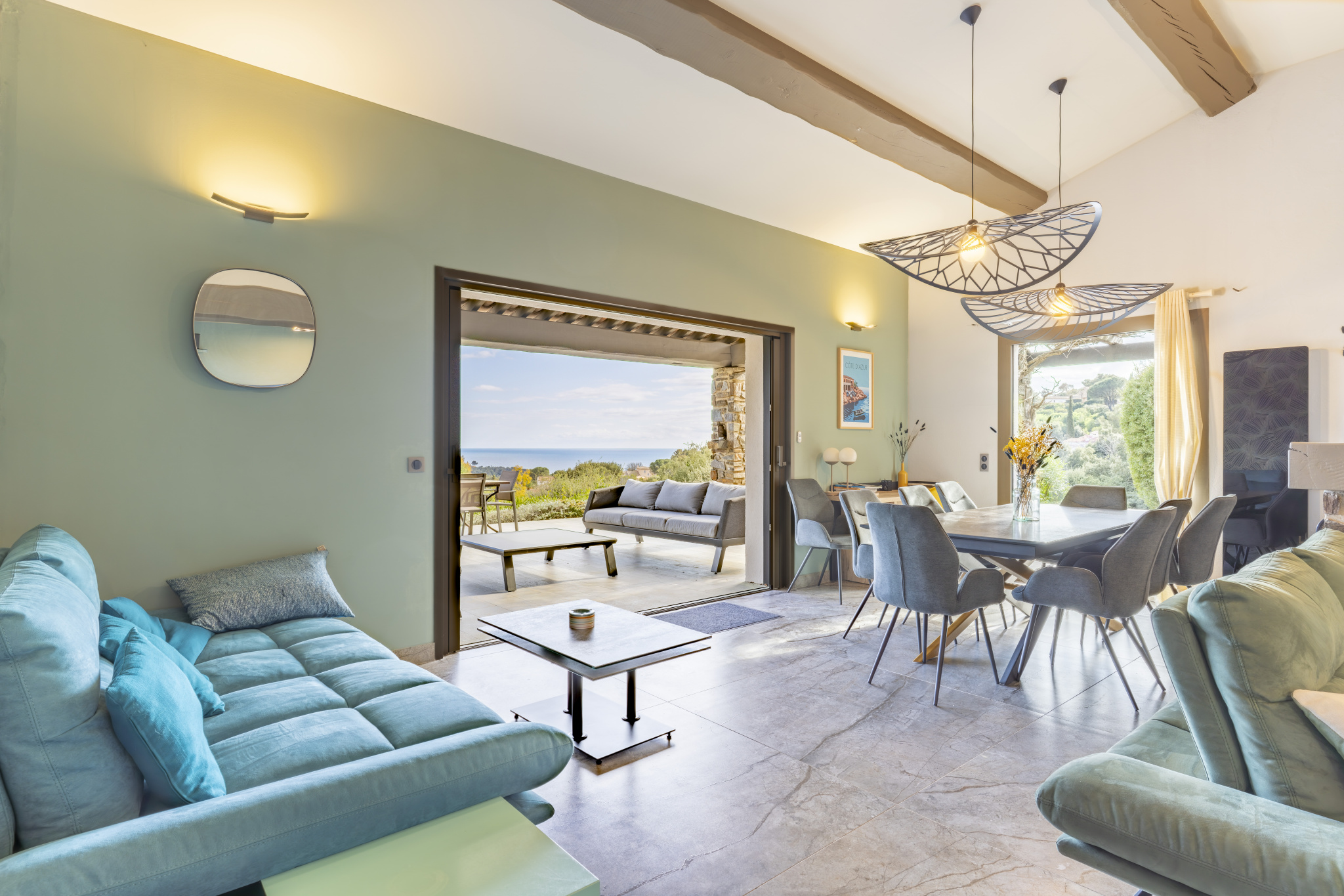 Renovated villa with sea view and swimming pool in La Croix-Valmer. Nestled in a quiet cul-de-sac, it offers approximately 135?m2 of living space on a landscaped 1,453?m2 plot.