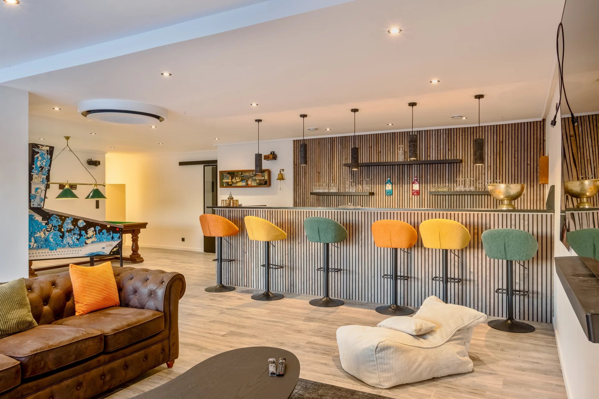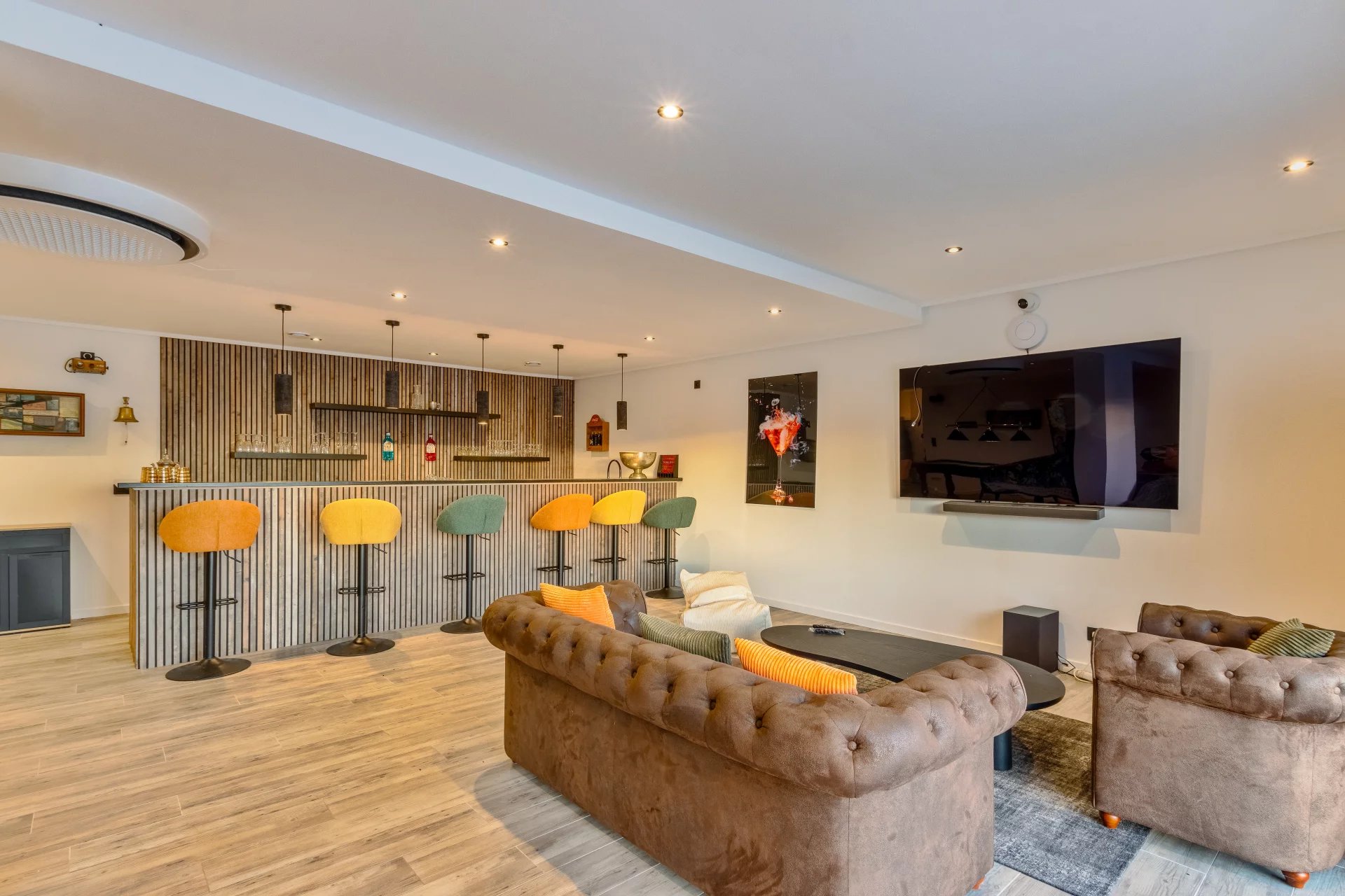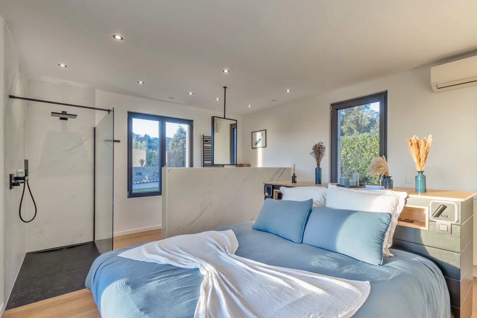 On the night side, there are five bedrooms, including two master suites, complemented by a space dedicated to children with a dormitory, shower room and play area.