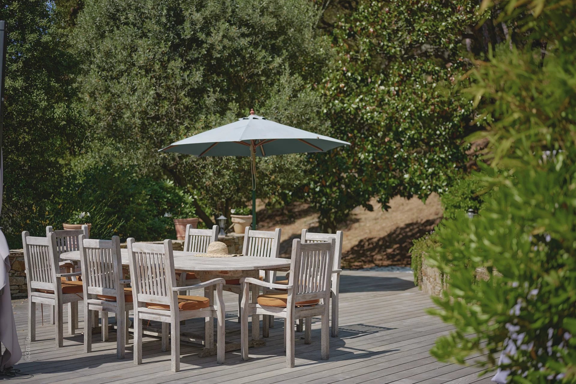 Renovated with quality materials (carpentry and aluminum shutters, stone of Jerusalem, travertine, quartz, granite), the property with dominant view nested in an exceptional place of La Croix-Valmer, with hundreds olive trees, Eucalyptus, Cedars of Lebanon, Magnolias, Pepper trees, Cork oaks, strawberries and other species of Provence. Terraces creates an amazing colorful vegetal frame you don’t want to miss