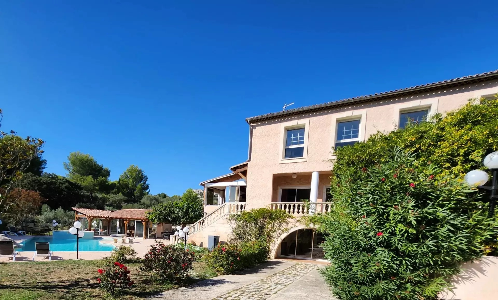 This beautiful Palladian house was built in 1988. A majestic automatic gate opens onto a beautiful driveway lined with olive trees and Mediterranean species.