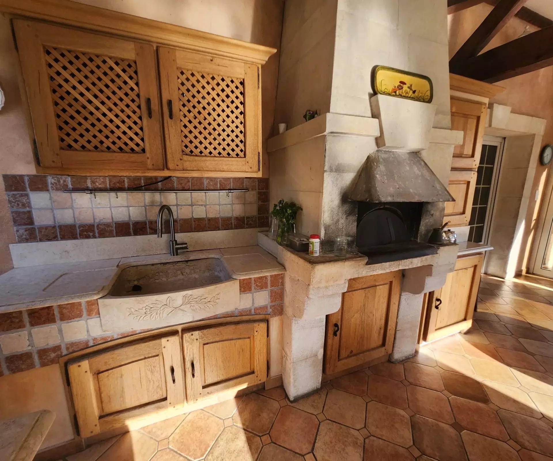 All doors and cupboard doors are in solid chestnut.