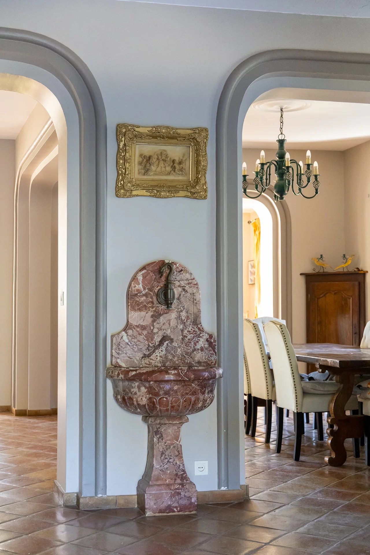 The main residence, approximately 320 sqm, stands in a dominant position and opens generously onto the sea and gardens. From the moment you enter, the volumes and natural light create an atmosphere that is both elegant and welcoming.