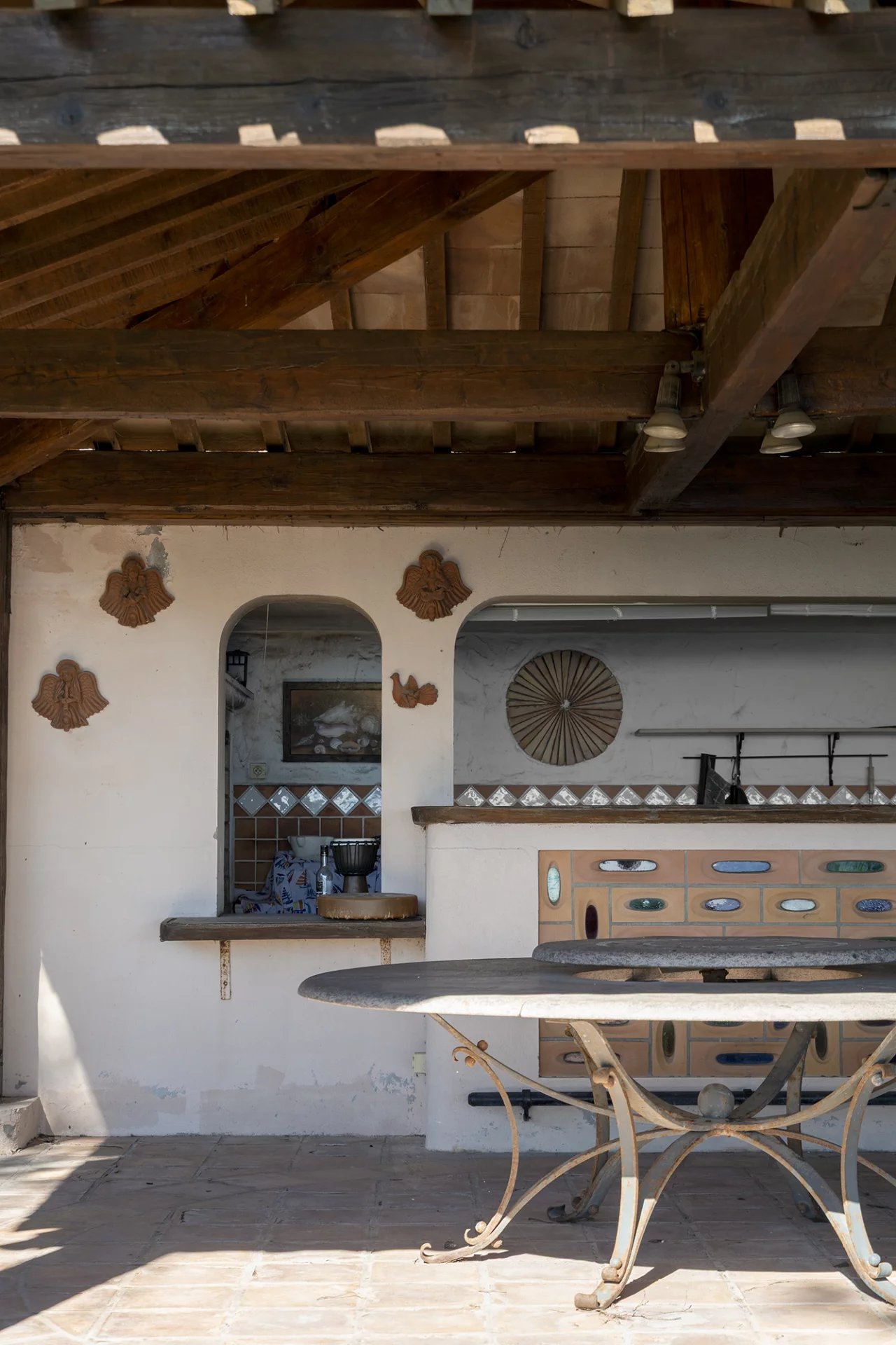 A fully equipped summer kitchen with barbecue and covered terrace enhances the outdoor living spaces.