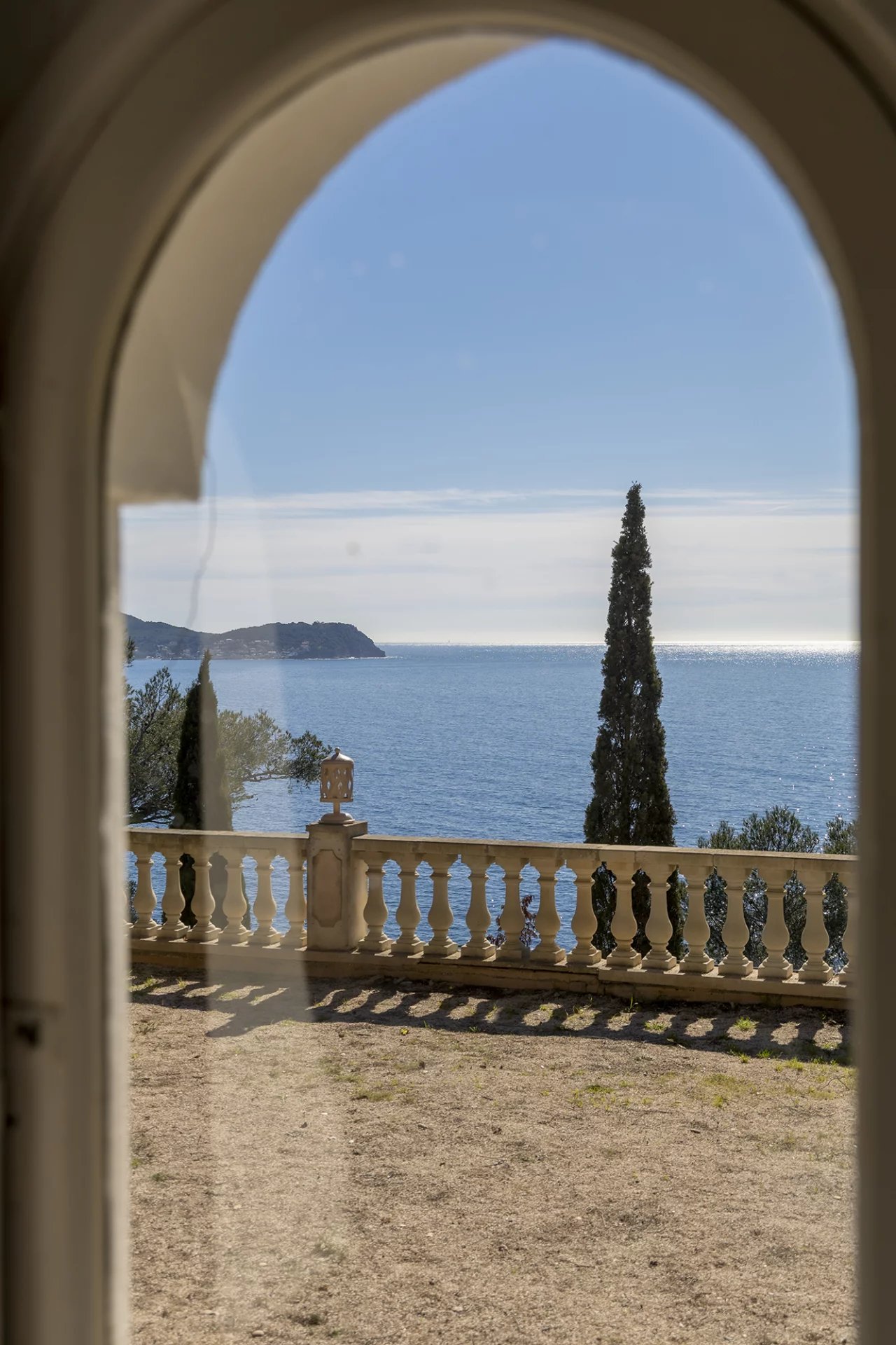 Overlooking the Mediterranean from nearly forty meters above the shoreline, this exceptional historic property enjoys a truly unique frontline seafront position, in the heart of the preserved area of Anse San Peyre, in immediate proximity to the Chapelle Sainte-Marguerite.