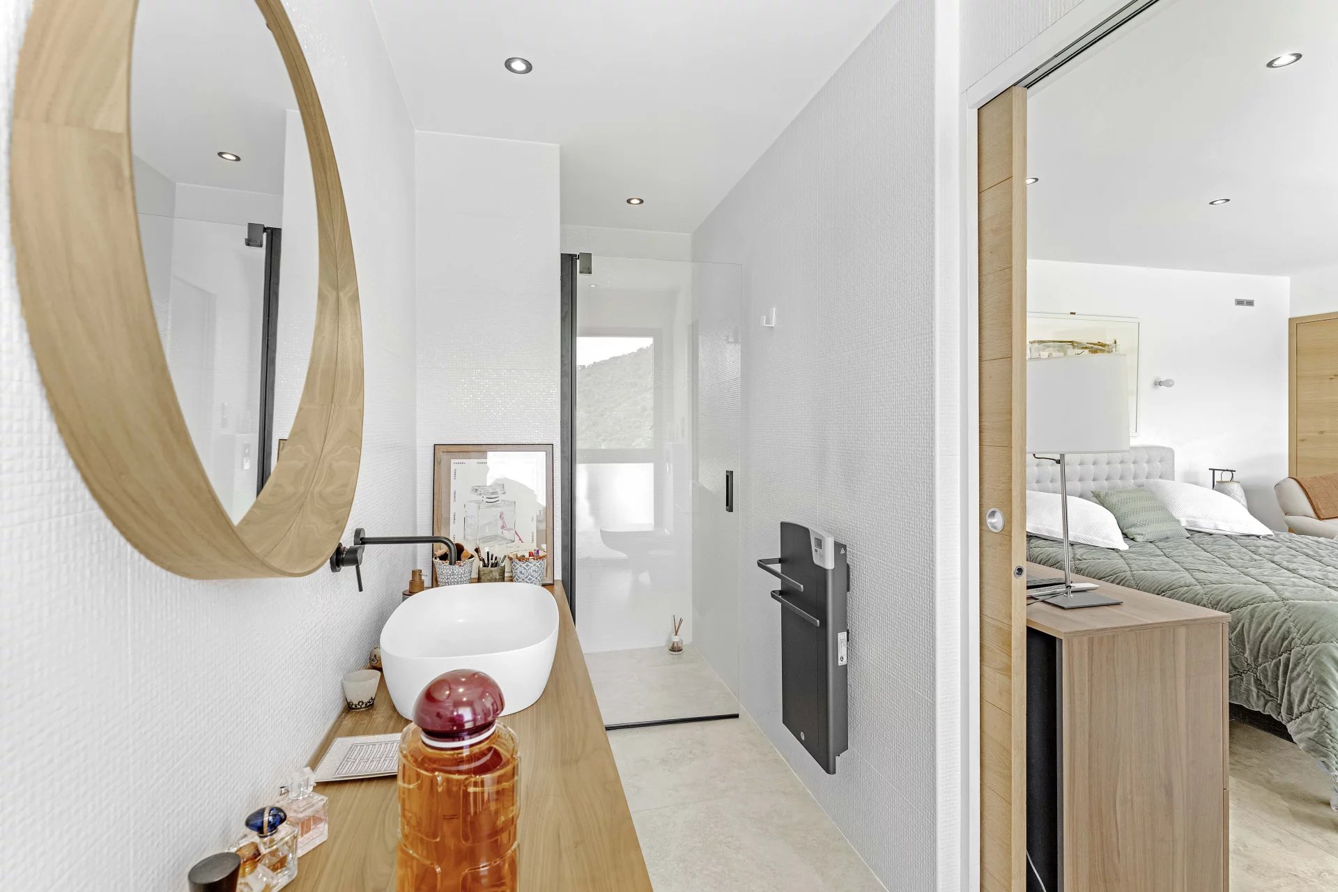 Nestled within a sought-after private estate. this contemporary villa captivates at first glance with its sleek architecture. harmonious lines. and light-filled volumes.