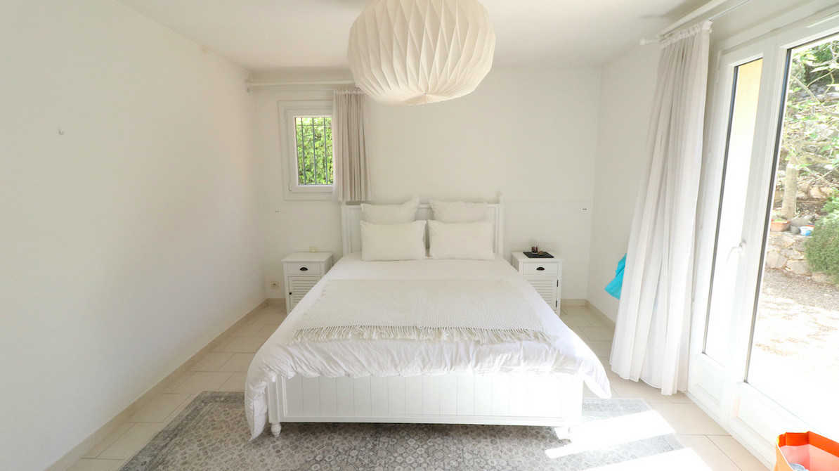 The main house is composed as follows: an entrance hall, a double living room with fireplace, dining room, and a designer fully equipped open-plan kitchen. On this level, there is also a bedroom with en-suite bathroom and a guest WC.