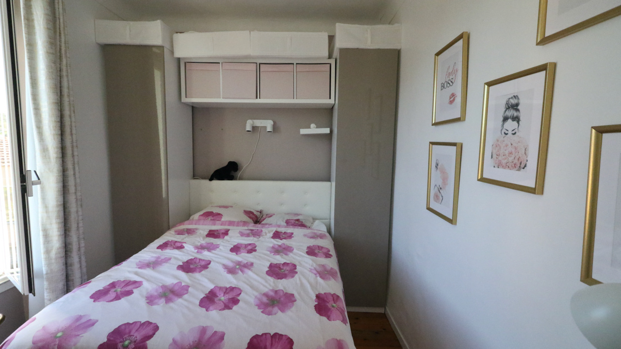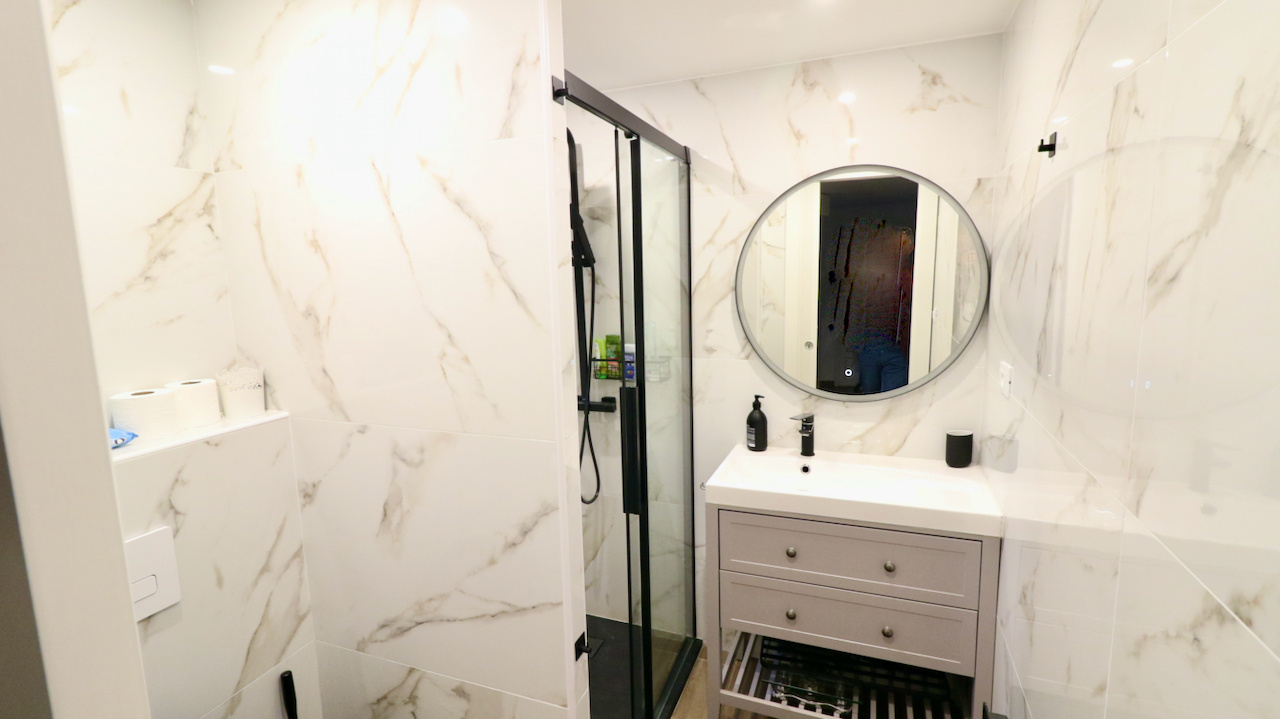 There is also attic space accessible via a retractable ladder, providing additional storage.