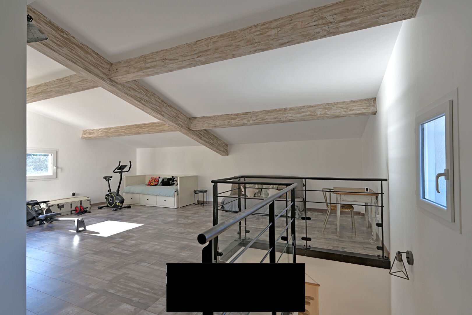 The outdoor space offers a picture-perfect setting, a true invitation to relaxation. The Mediterranean garden flourishes around a beautiful 9 x 4.5 m swimming pool, bordered by a wide wooden deck and a fully equipped pool house with a summer kitchen. An exceptional place, designed to savor every moment, from convivial gatherings and relaxation to long evenings under the stars.