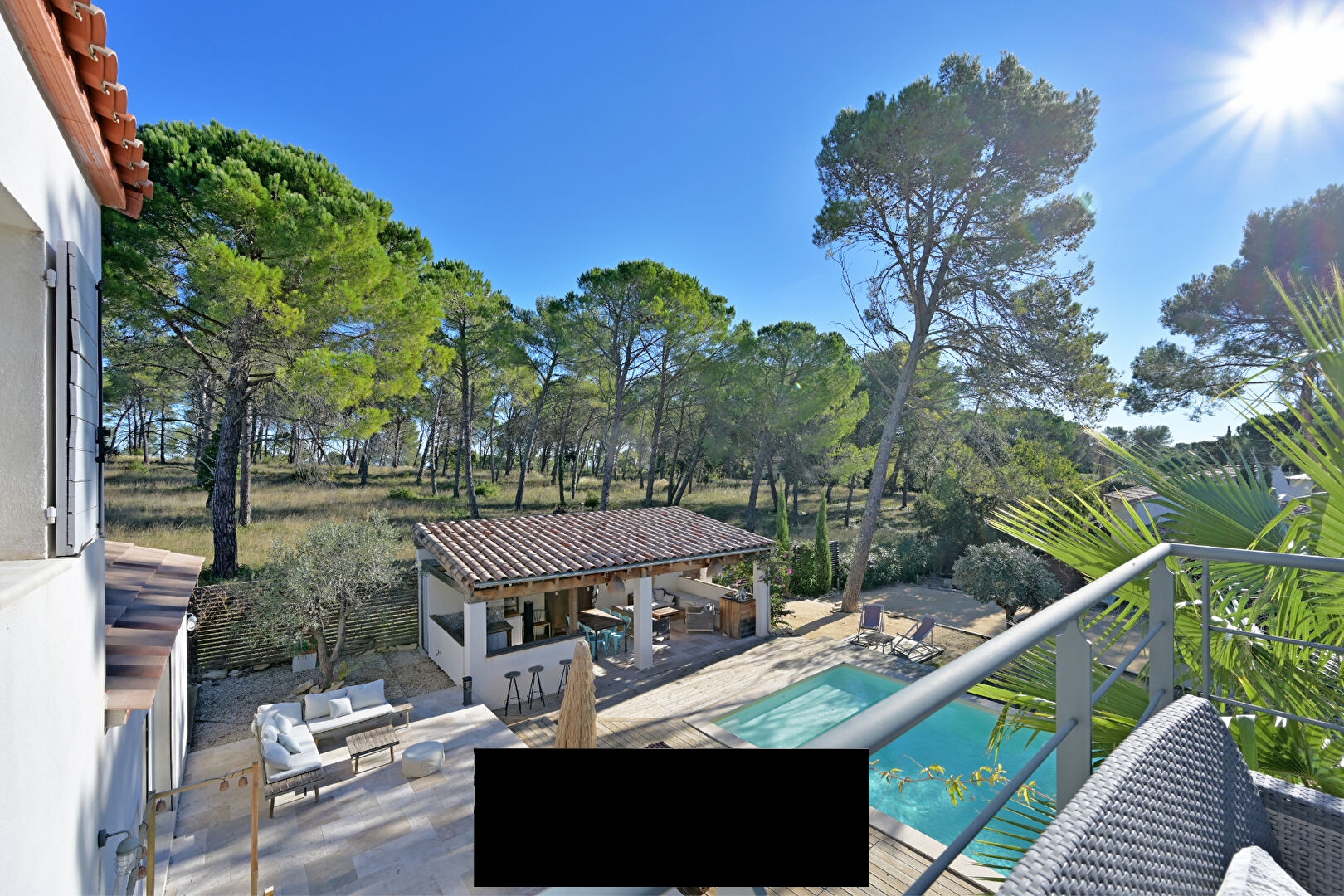 Nestled on the heights of the charming village of Langlade, near Nimes, the property enjoys an idyllic location in absolute tranquility, bordered by a protected pine forest.