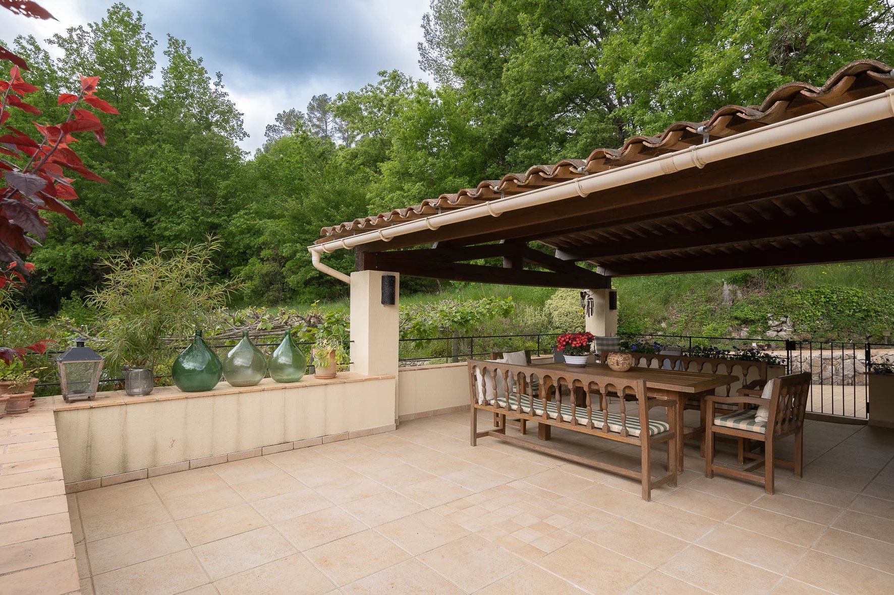 The mature garden has been beautifully maintained and boasts trees and vines that create natural shade to terraces where needed in summer months. This is truly a haven of peace and tranquillity on the Cote d’Azur!