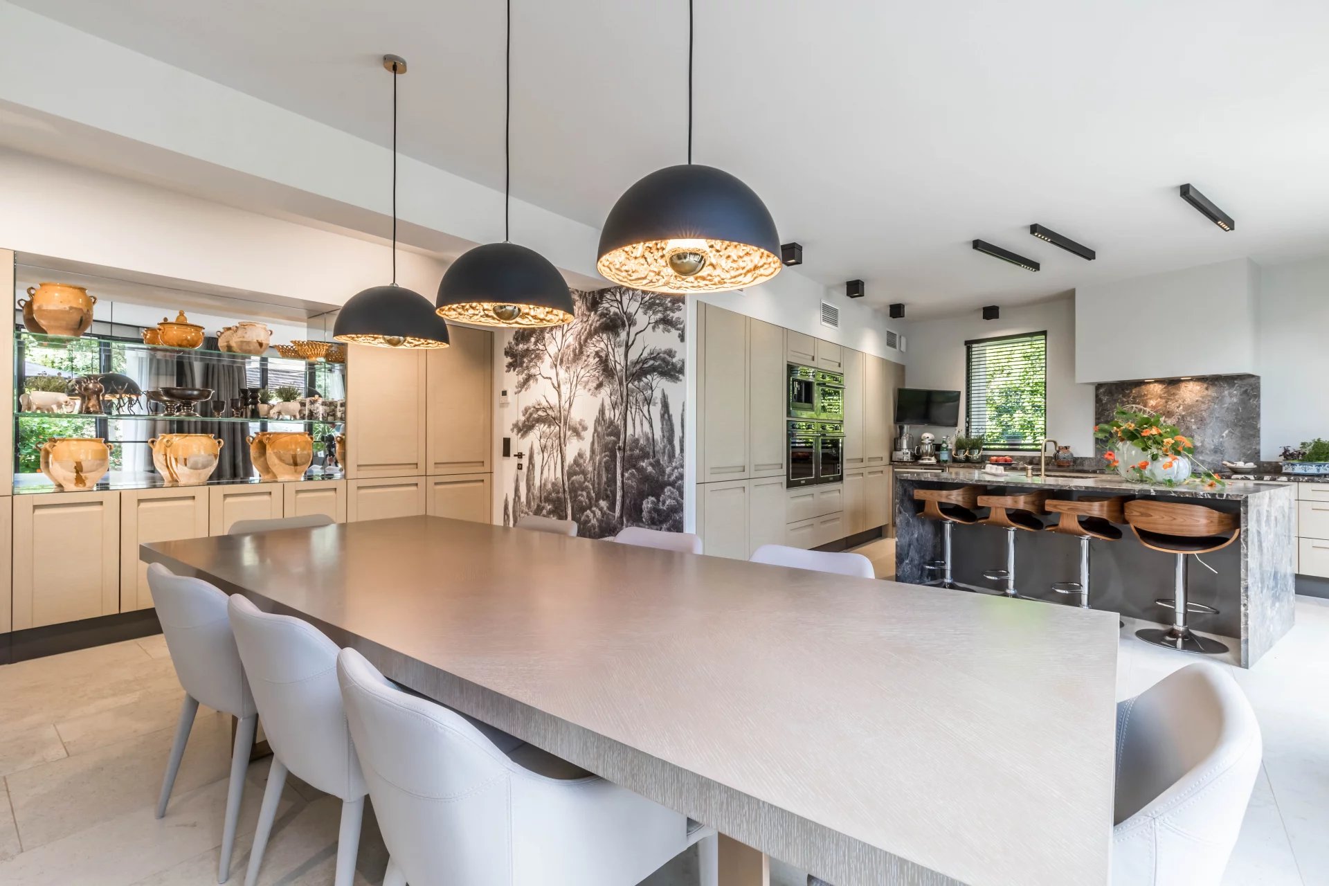 – Sophisticated dining area flowing into a fully equipped open-plan kitchen.