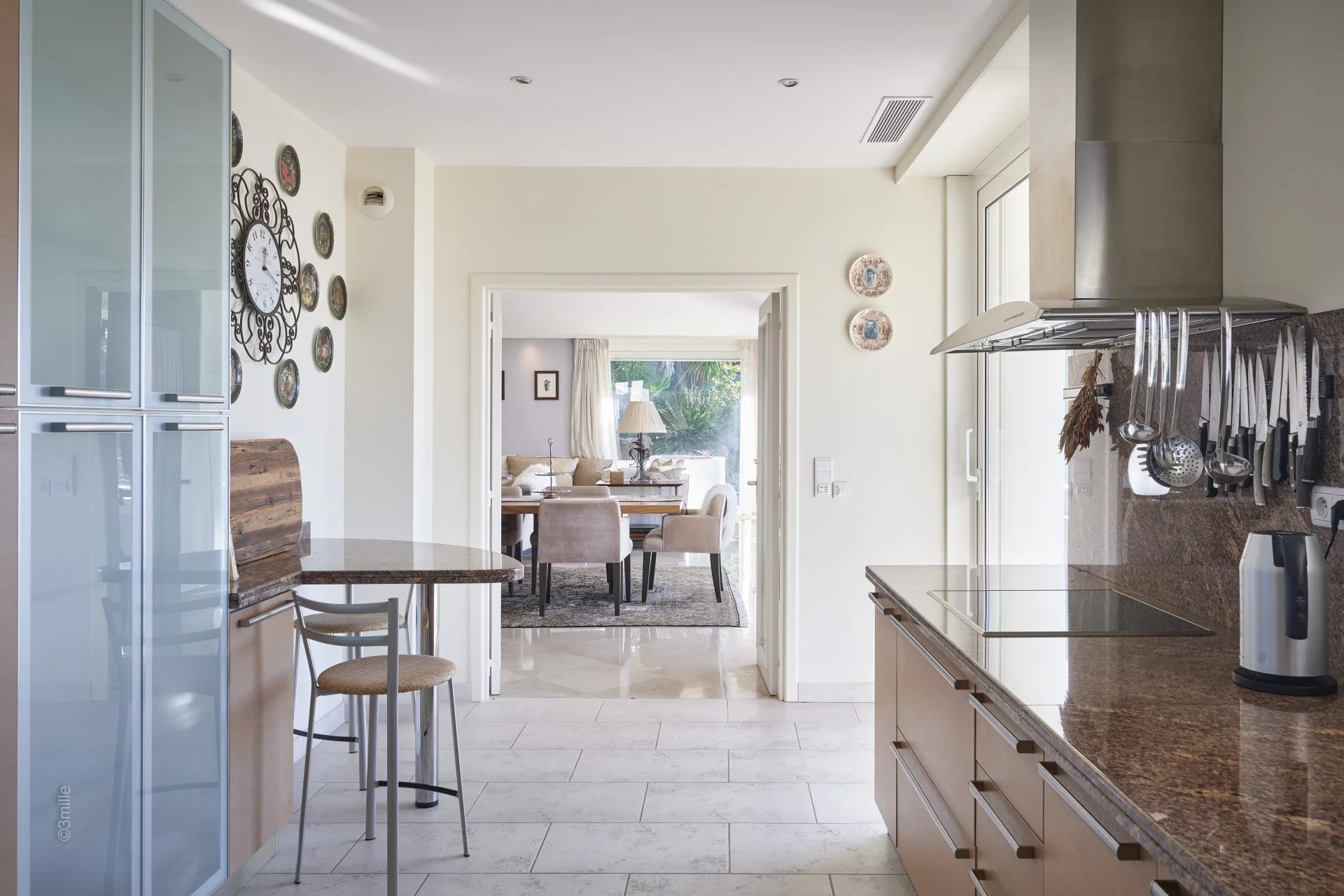 This villa has a spacious reception as well as five en-suite bedrooms, a wellness area and a wine cellar. An independent studio with kitchenette and a garage for 2 cars complete this property.