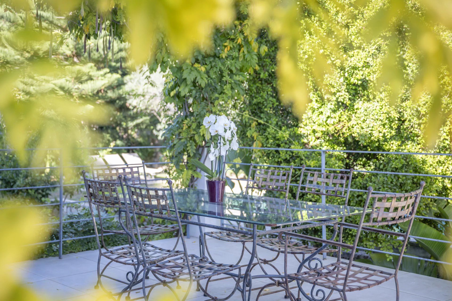 The upper floor is dedicated to the bedrooms, with three bedrooms and three bathrooms, including a spacious master suite with terrace, en-suite bathroom and study, as well as a second master bedroom with balcony.