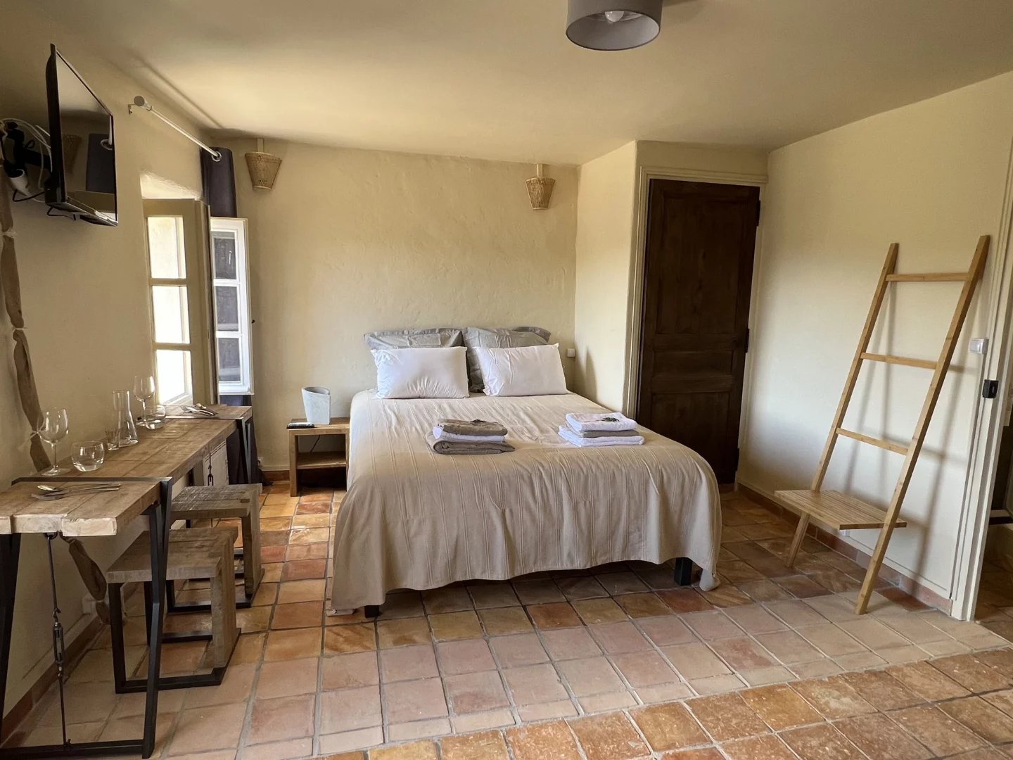 Two independent studios, each with their own kitchen, shower room, WC and private terrace, provide fully autonomous accommodation for guests or holidaymakers.