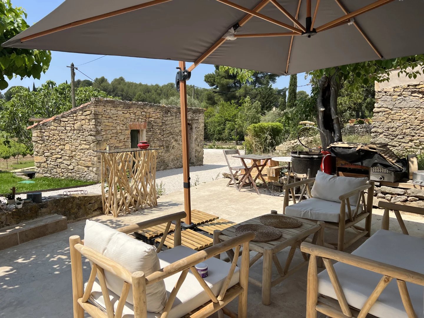 The outdoor areas, designed as a true invitation to the Provencal art of living, include an infinity pool, a stone cabanon, two charming and atypical summer bedrooms, an outdoor bathroom, a shaded terrace and several parking spaces.