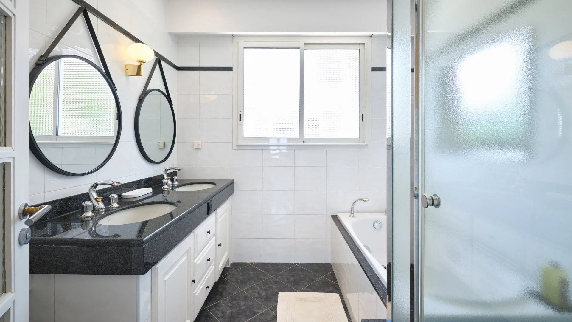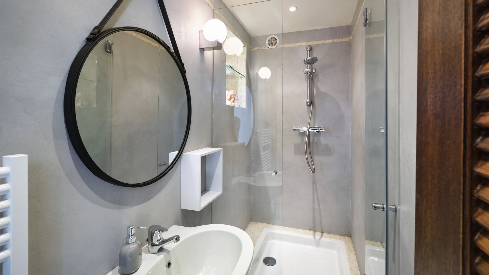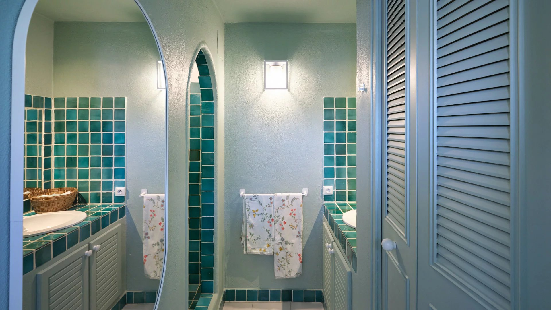 – A air-conditioned bedroom with a bathroom, shower, and WC