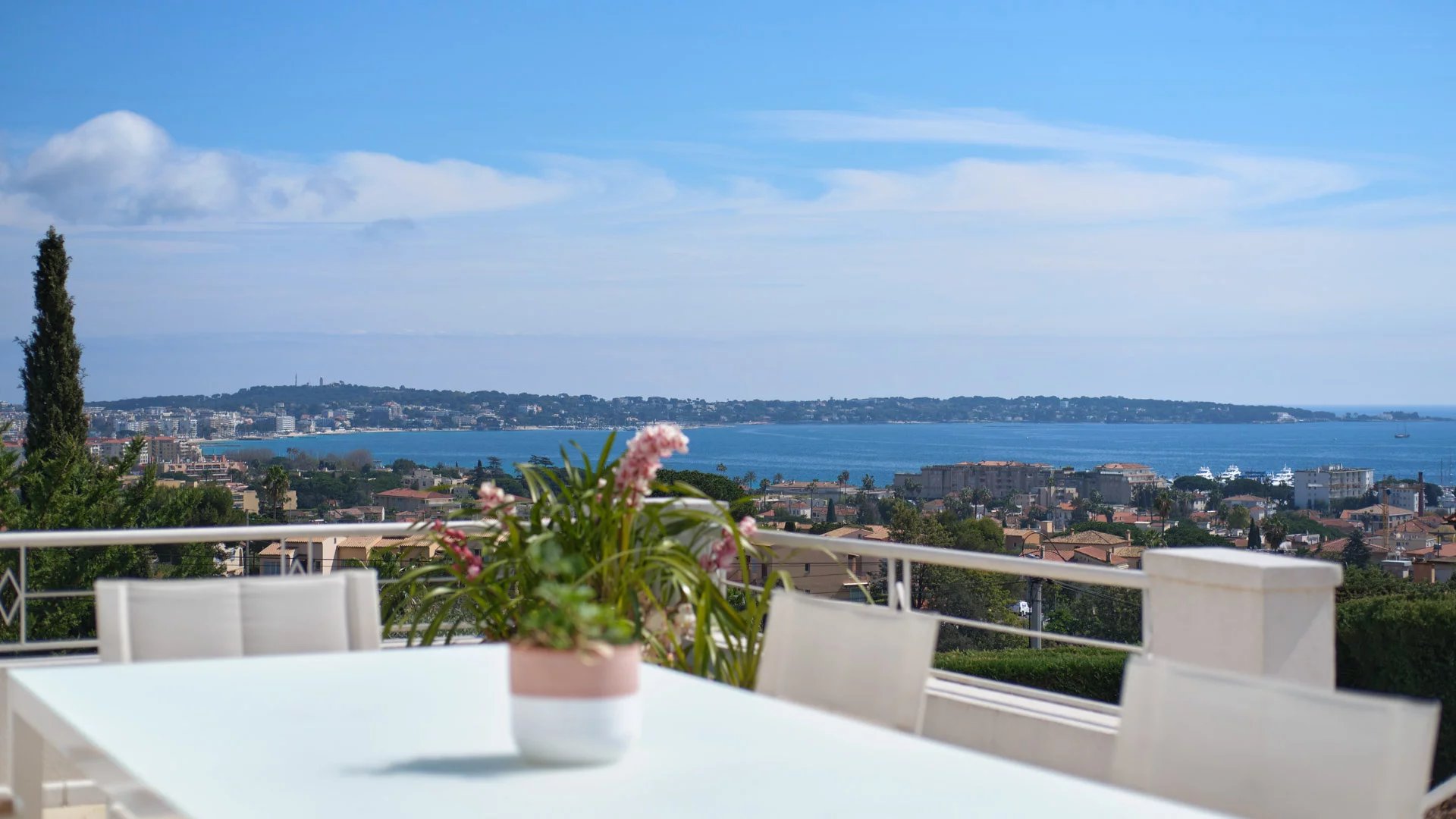 On the heights of Golfe-Juan, just 800 meters from the beaches, in the heart of a 990 m2 garden, contemporary villa of about 174 m2 of living space benefiting from a beautiful sea view.