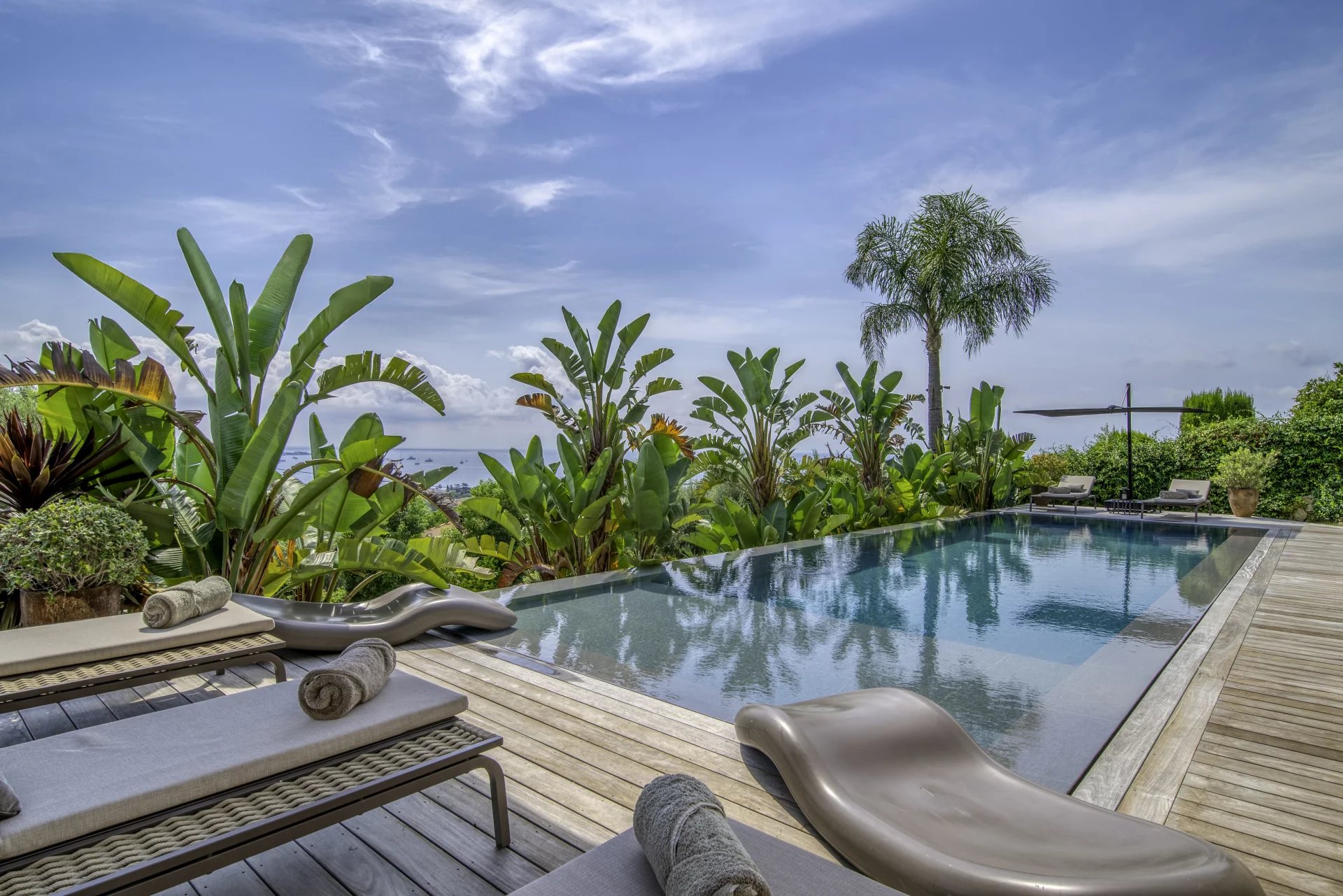 Located on a landscaped plot of 2,652m2, the villa benefits from a beautiful mirror swimming pool with a carefully designed heated swimming lane, surrounded by terraces and relaxation areas.