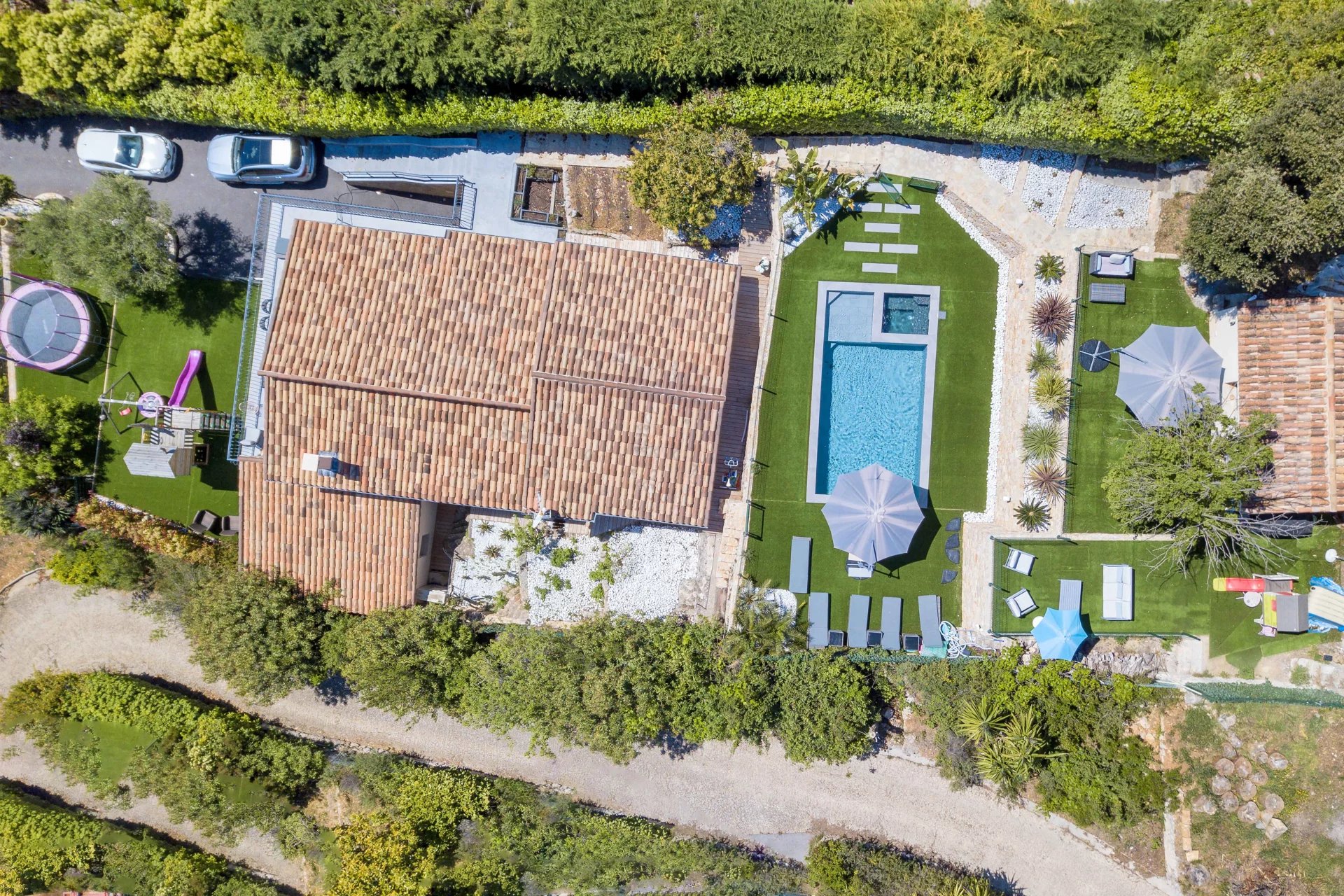 Charming fenced and landscaped grounds of 2,068 m2 with swimming pool, beautiful terraces. In annex, independent studio, cinema room, car parking for several cars.