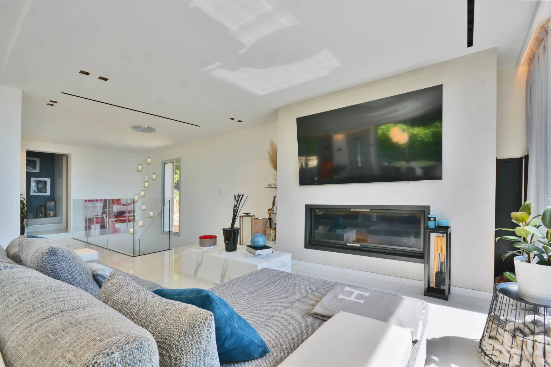 Inside its well appointed interiors, entrance hall, large and bright living room with fireplace, dining room, open plan fitted kitchen, storeroom and laundry room, 4 bedrooms including a spacious master suite with dressing room, 3 bathrooms.