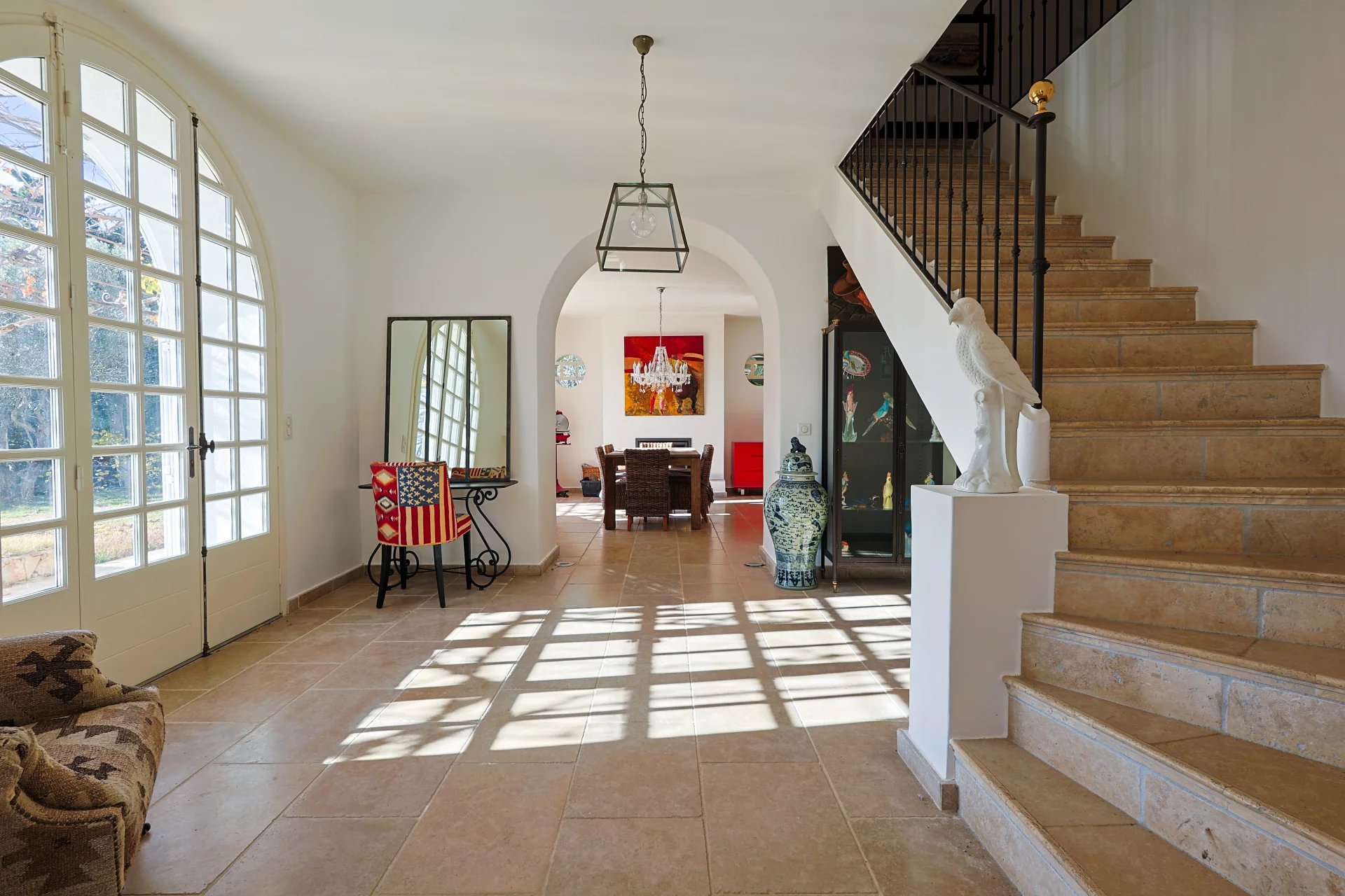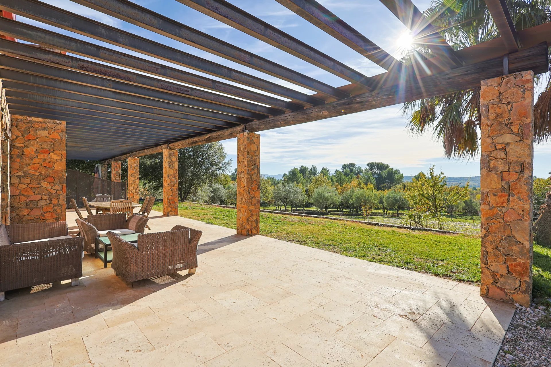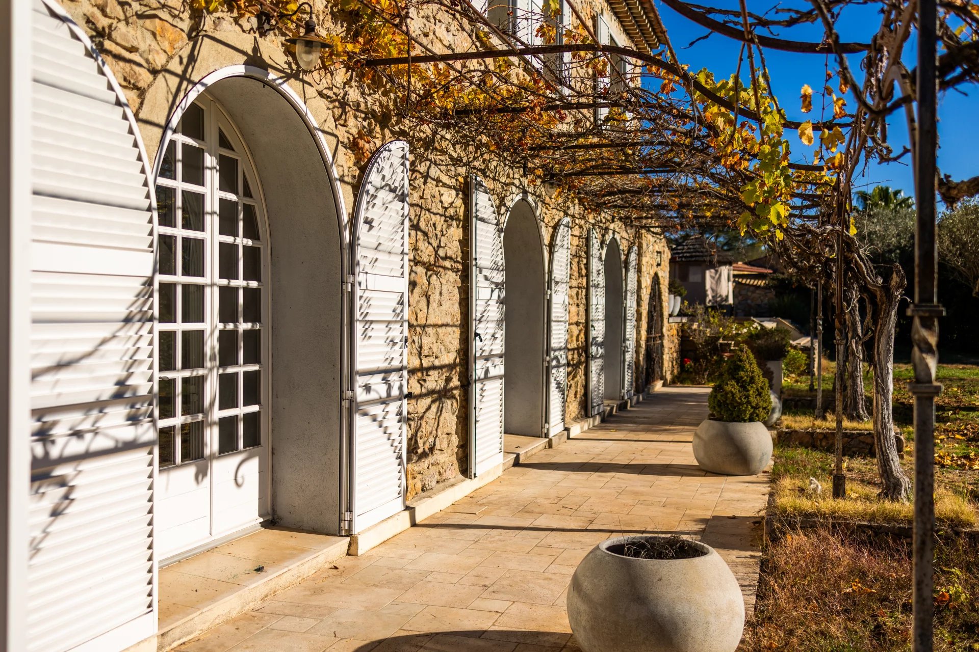 This sumptuous residence, entirely renovated with great taste and noble materials in contemporary Provencal style, features a 300 m² master house, a 150 m² guest house and a 150 m² garage, offering an exceptional living experience.