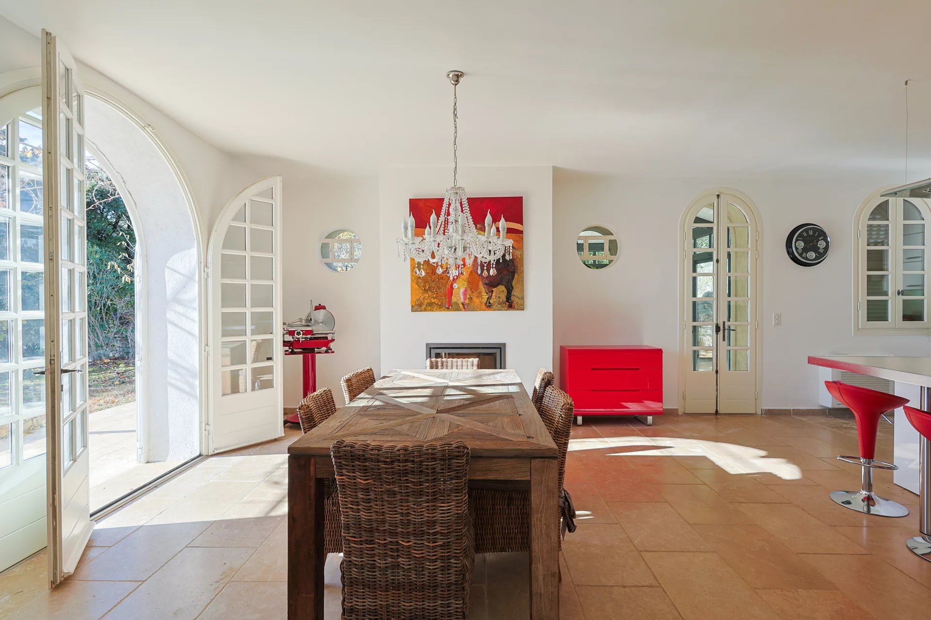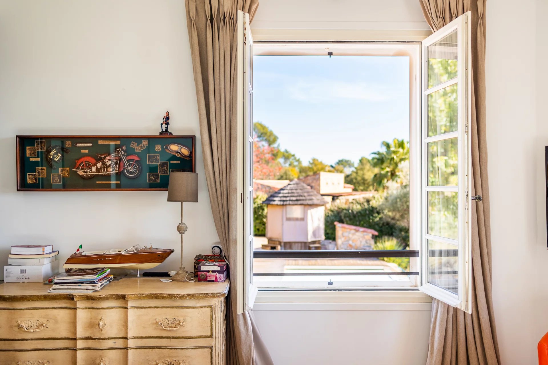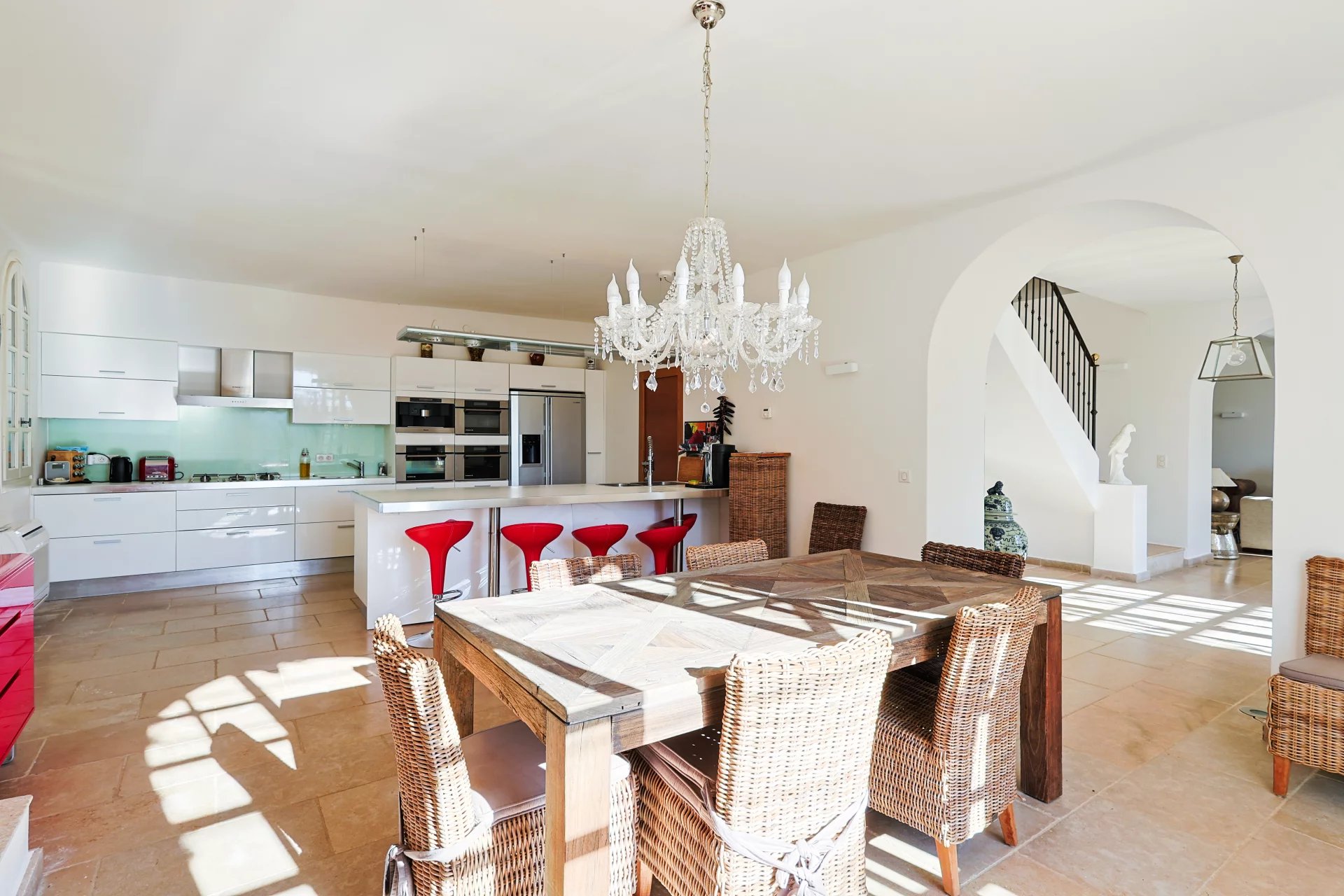 This sumptuous residence, entirely renovated with great taste and noble materials in contemporary Provencal style, features a 300 m² master house, a 150 m² guest house and a 150 m² garage, offering an exceptional living experience.