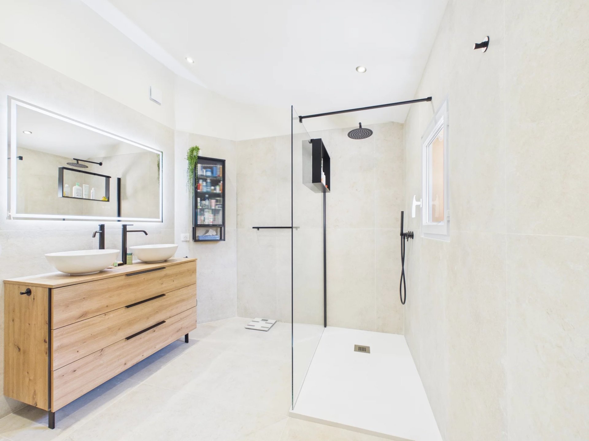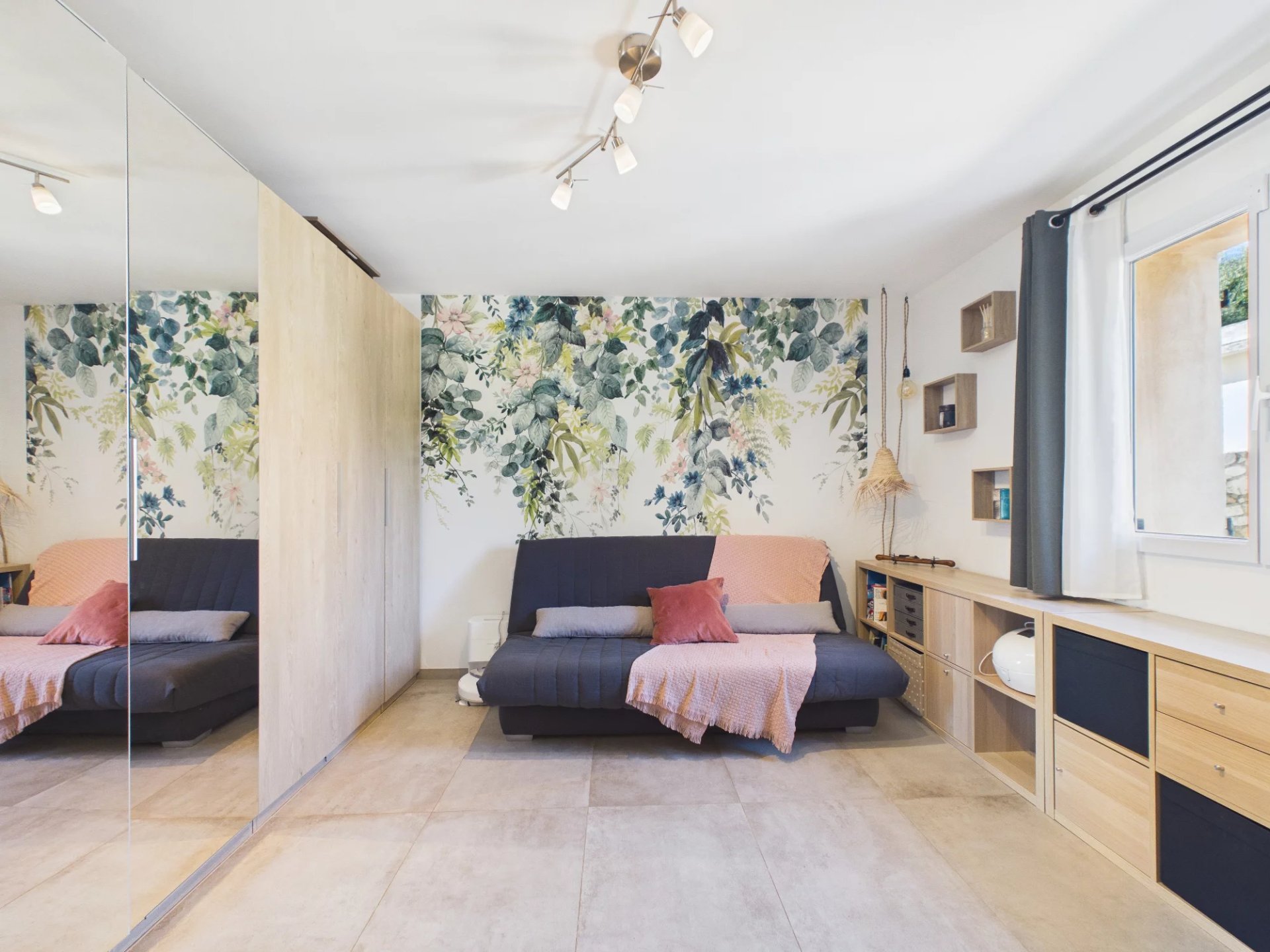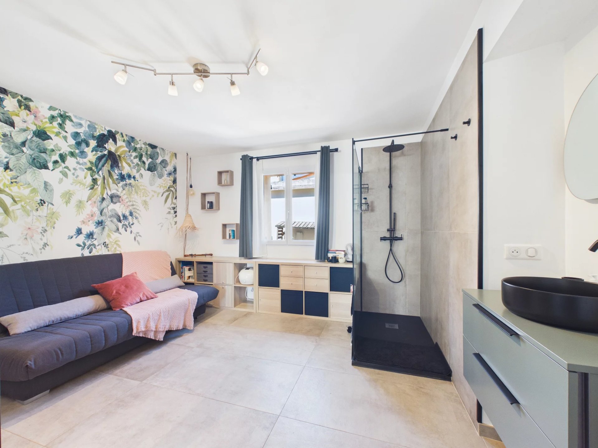 Upstairs, a landing leads to three bedrooms, including a master suite with a private terrace, a spacious bathroom with a cupboard, a shower room and a separate toilet.