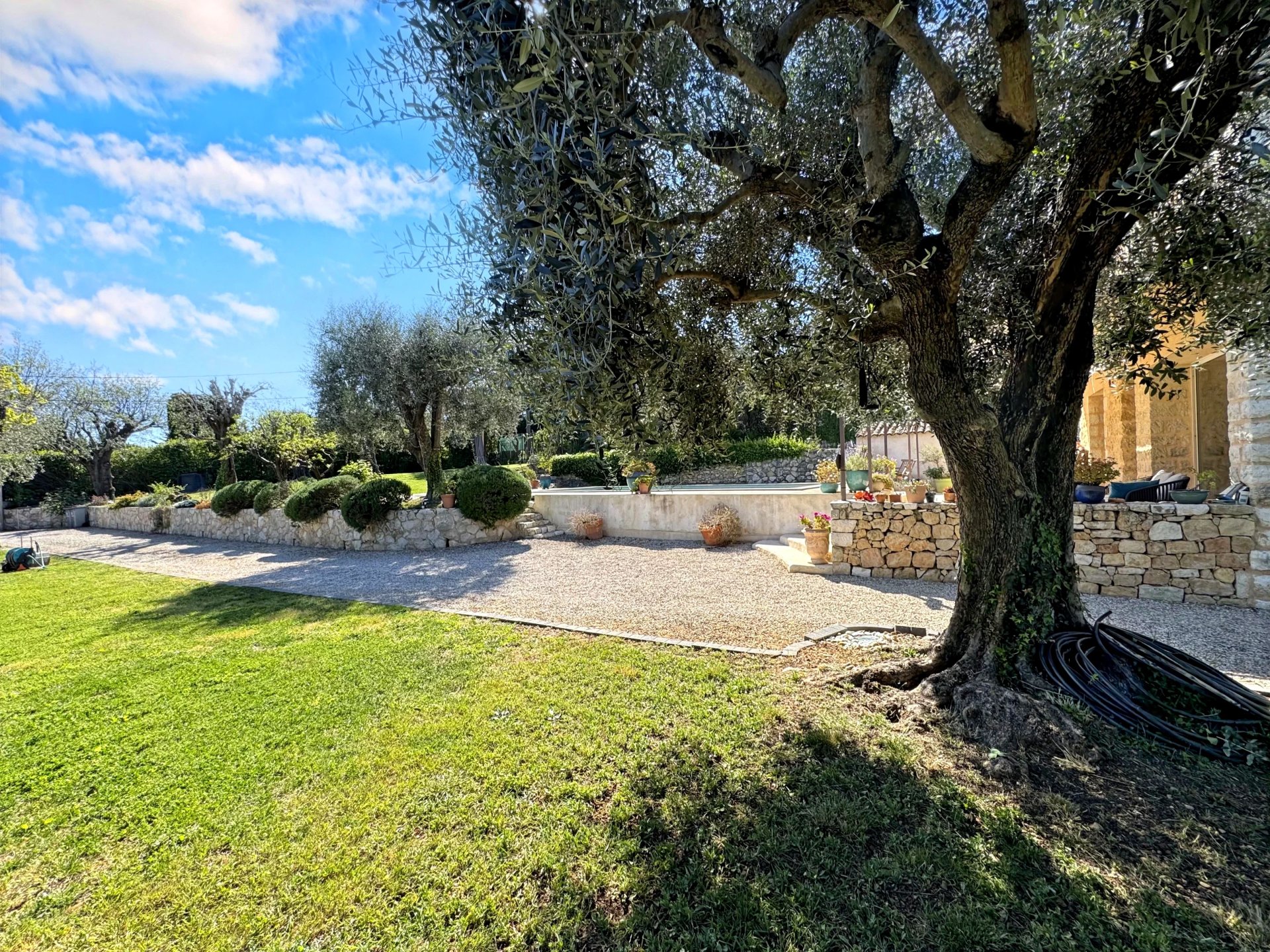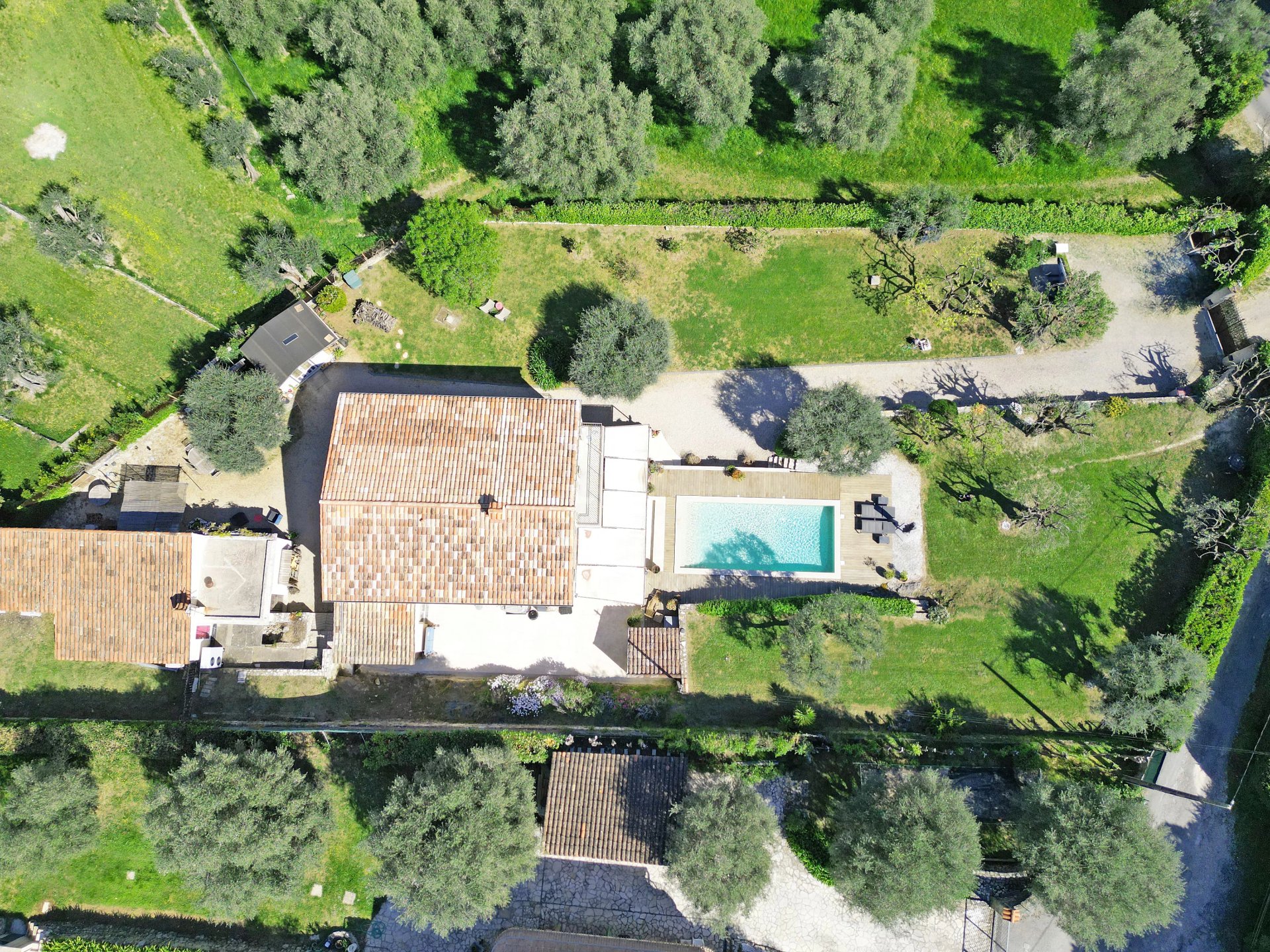 The property is set on a magnificent plot of approximately 2,160 m2, featuring a traditional swimming pool. You will enjoy a beautiful unobstructed view over an olive grove and the mountains.