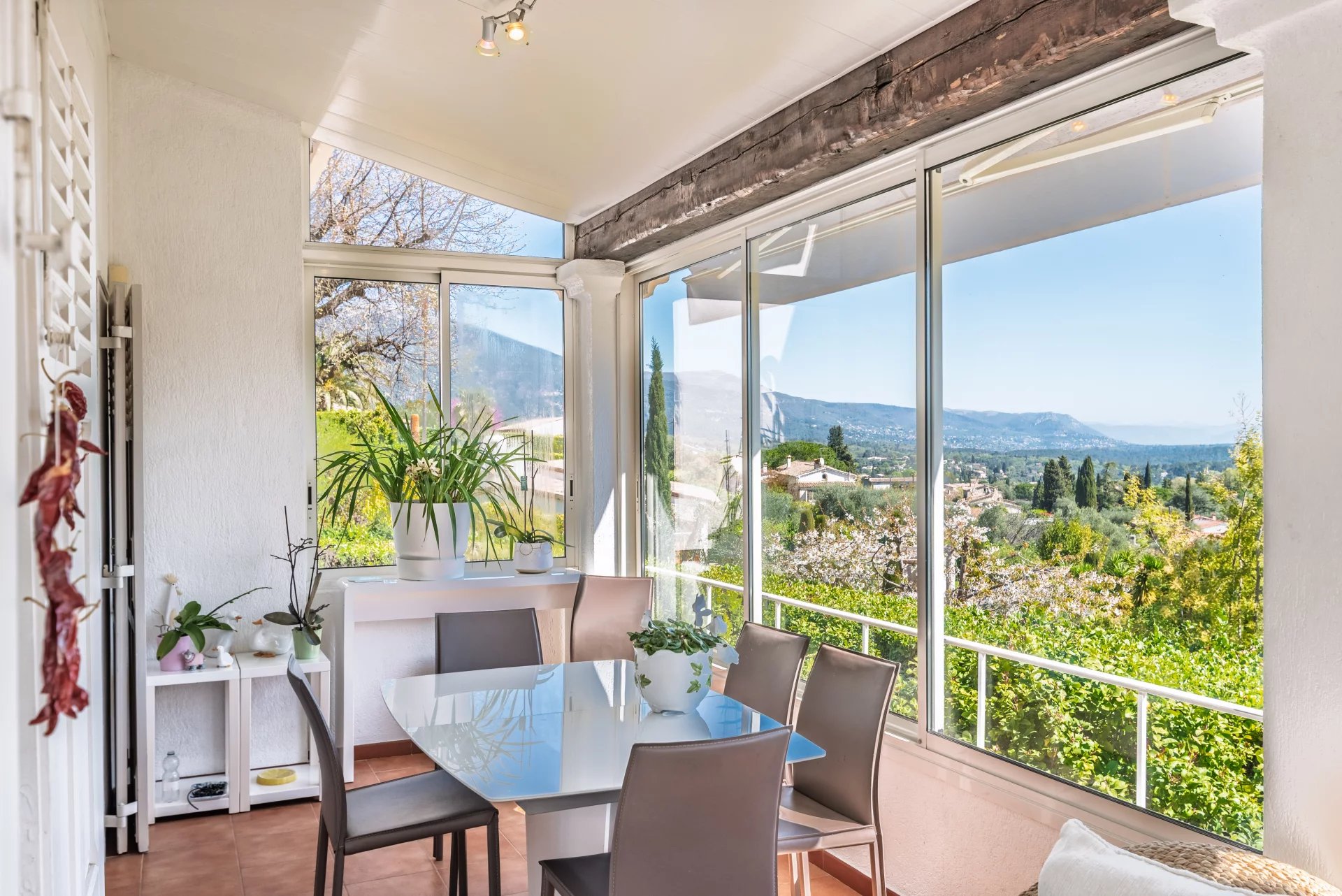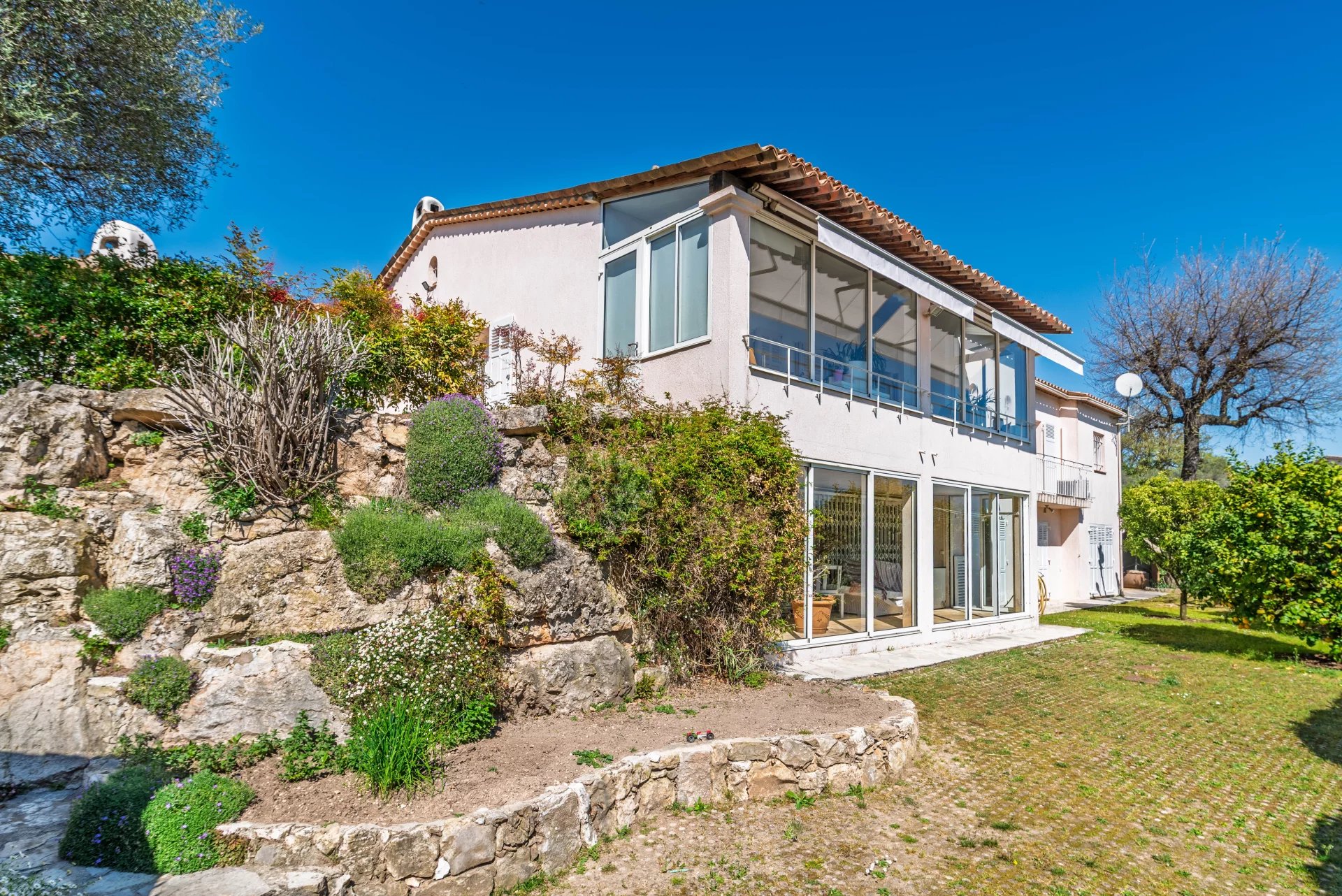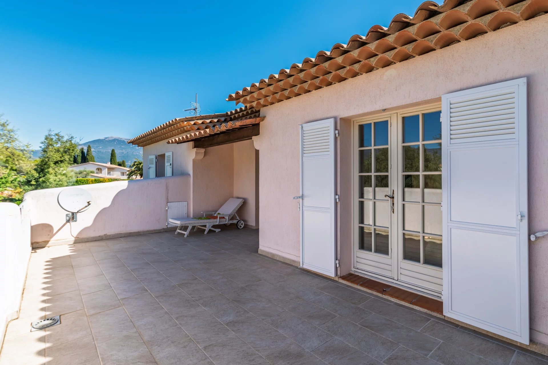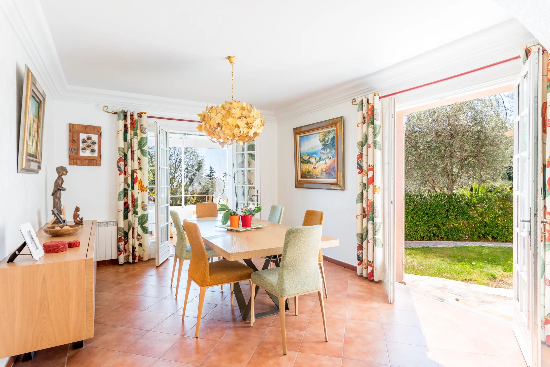 Located in Le Rouret, within a secure gated estate, this south-facing villa enjoys a peaceful setting, abundant natural light, and a pleasant sea view.