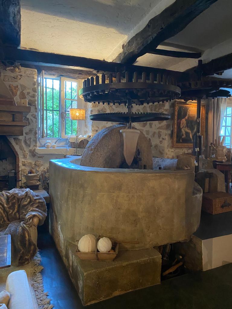 The property spans approximately 410 m2 and offers a harmonious blend of historic charm and modern comfort. Inside, you’ll discover a well-crafted layout. A spacious living area of about 110 m2 has been tastefully integrated into the mill’s original features, including millstones, a press and a fireplace. This unique space seamlessly transitions from a welcoming bar to a cosy dining area and a tranquil lounge to a functional home office. The generously sized kitchen is complemented by an adjoining dining space, creating an inviting environment for culinary endeavors. The sleeping quarters consist of three en-suite bedrooms, where timeless appeal meets contemporary convenience.