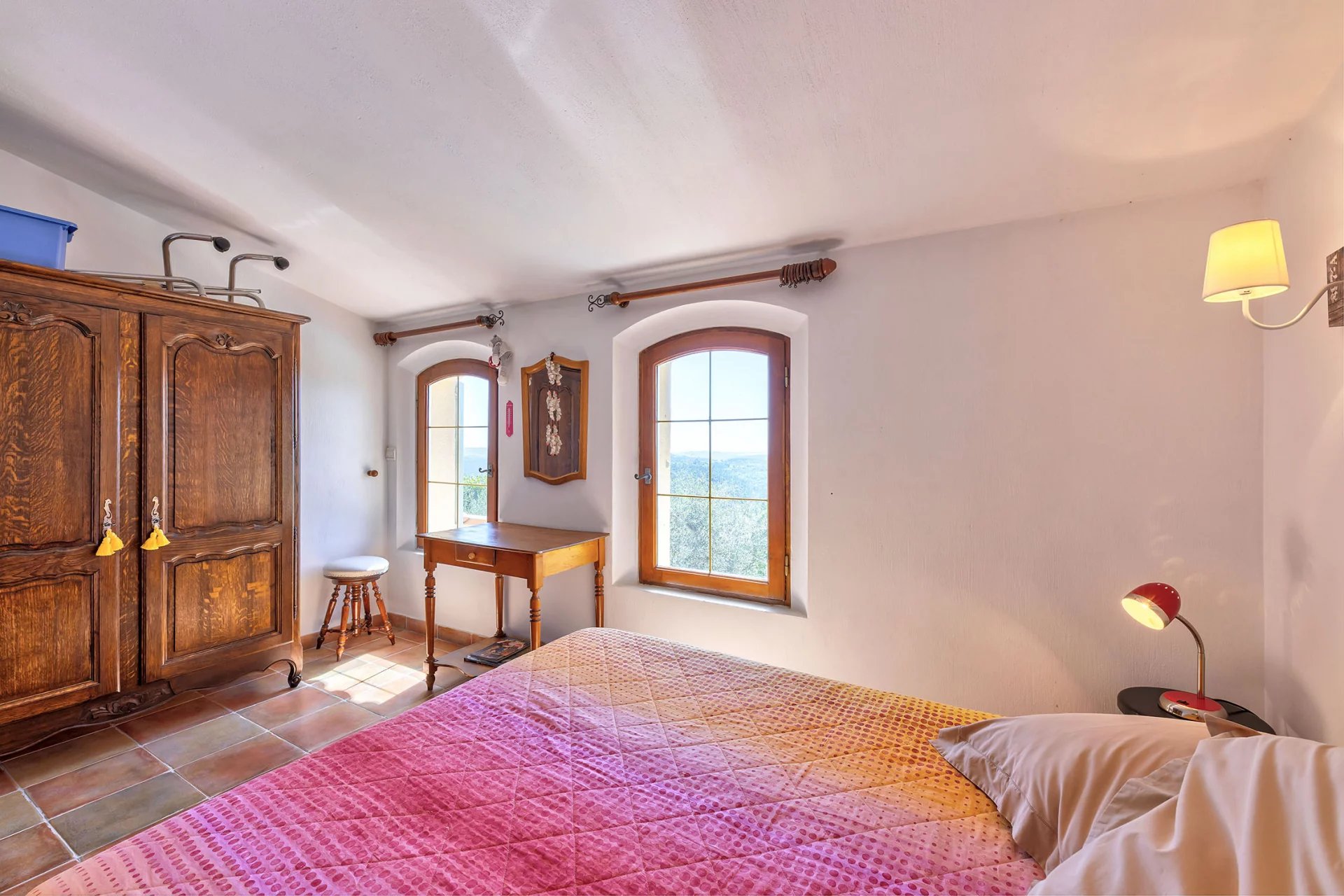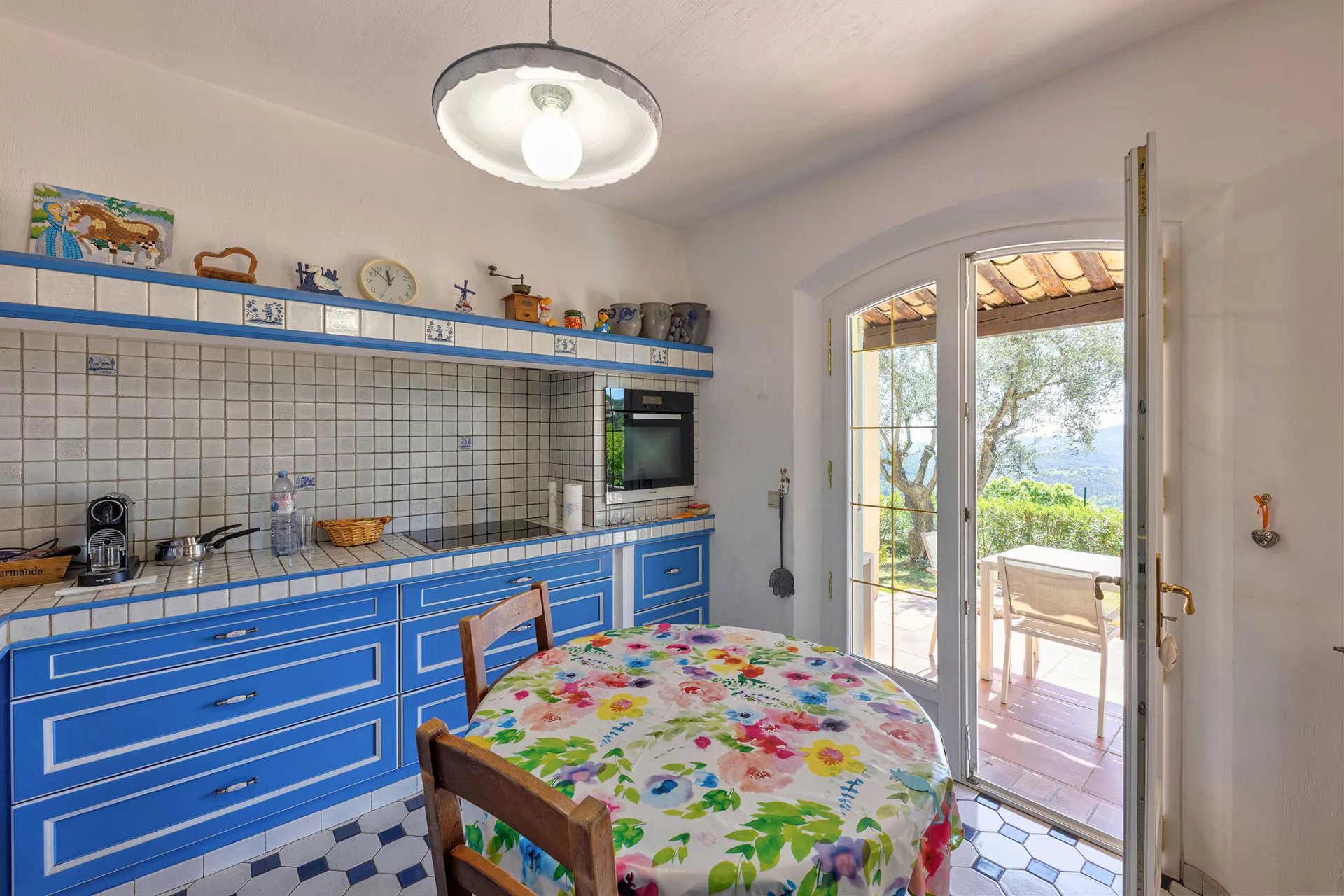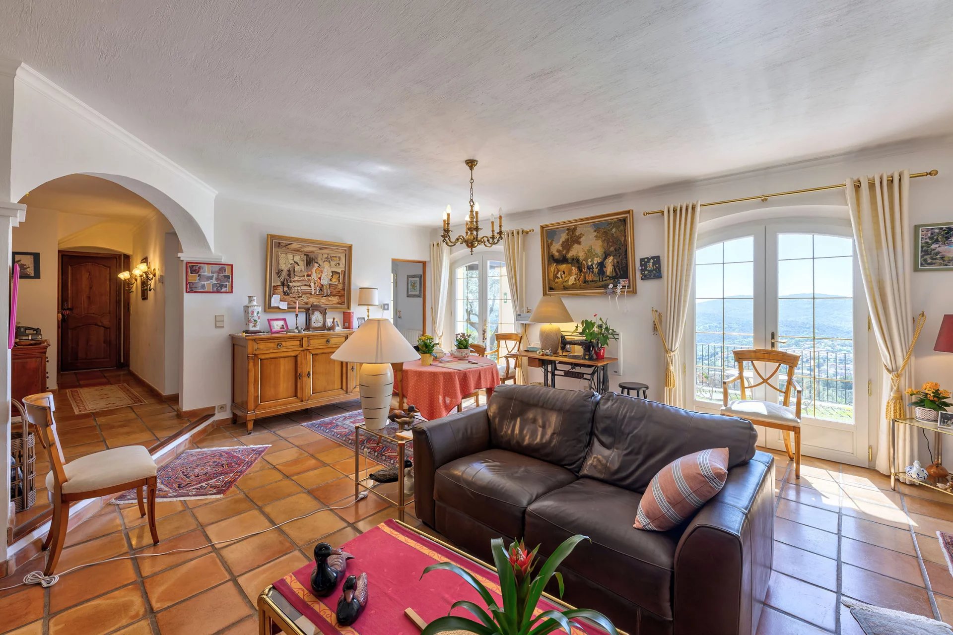In a beautiful natural setting, surrounded by greenery and set in a dominant position, this property enjoys a stunning panoramic view reaching all the way to the sea. It sits on a landscaped plot of 2,500 m2 adorned with majestic olive trees and features a refined infinity pool.
