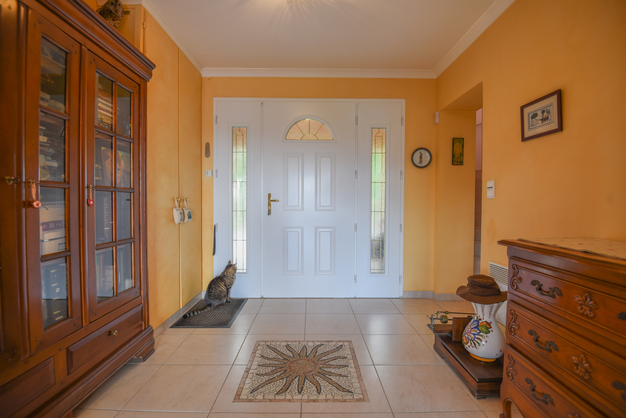 The entrance hall, the bright living room, and the spacious kitchen, extended by a beautiful veranda, will captivate you as soon as you enter. On the same level, you will find two lovely bedrooms, a bathroom, an office, separate toilets, and a laundry room.