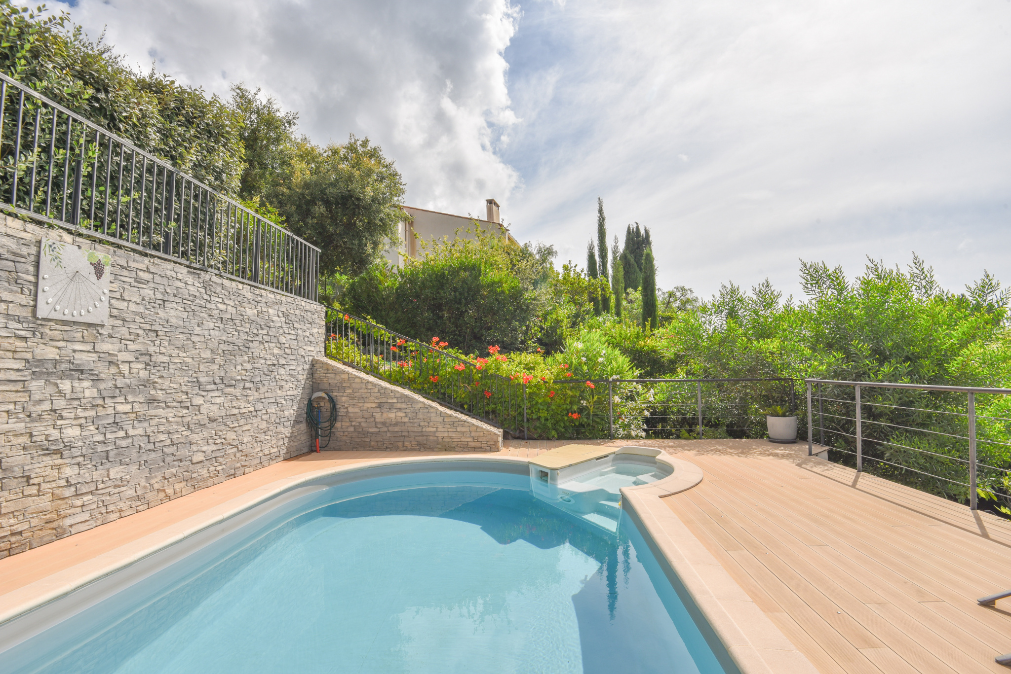 From the various terraces next to the living room, next to the apartment, and around the pool you will enjoy magnificent views of the Lerins Islands and the Esterel hills.