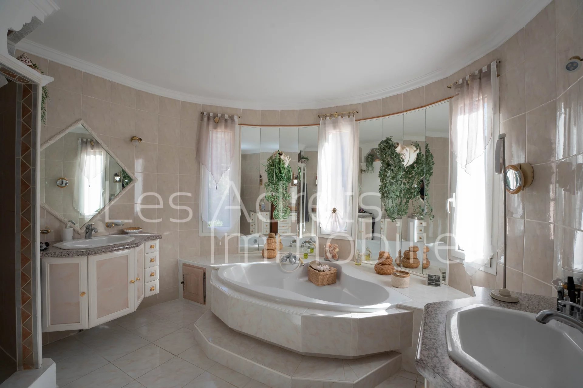 Situated in the heart of the Esterel in a secure environment just 5 minutes from Les Adrets and 10 minutes from Mandelieu, this extensive 220 m2 family villa is set in 2350 m2 of land with its own swimming pool and pool house.