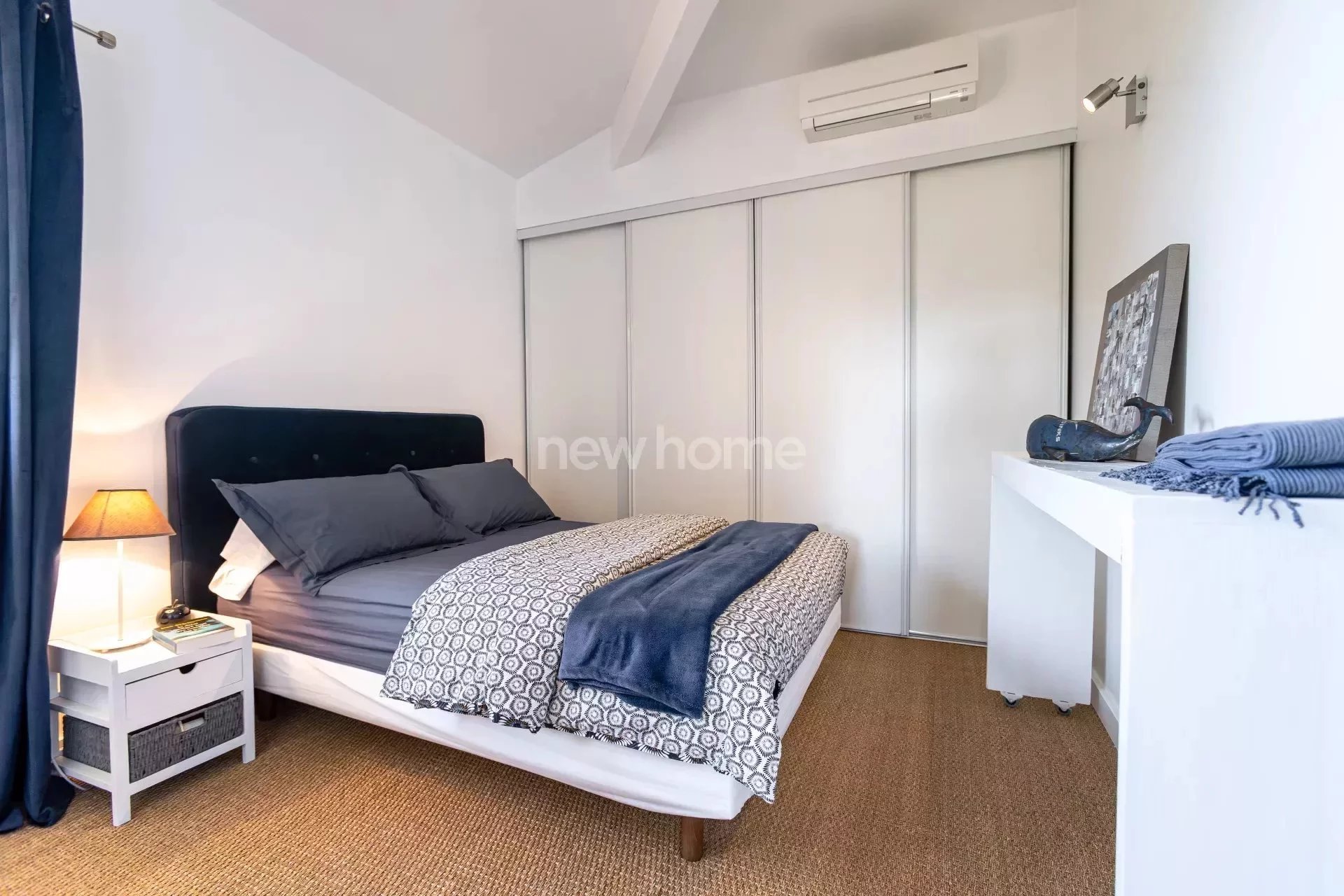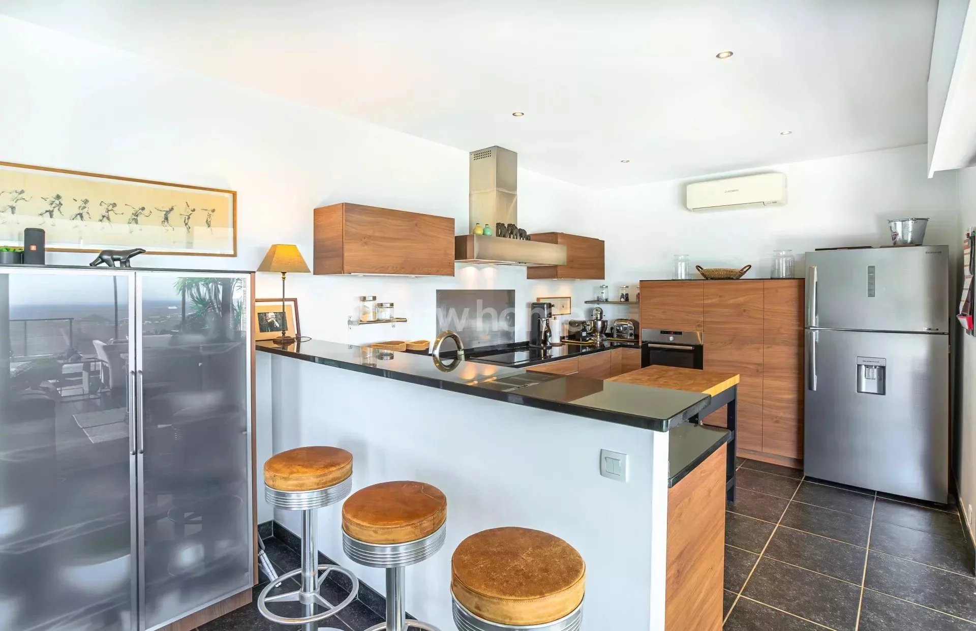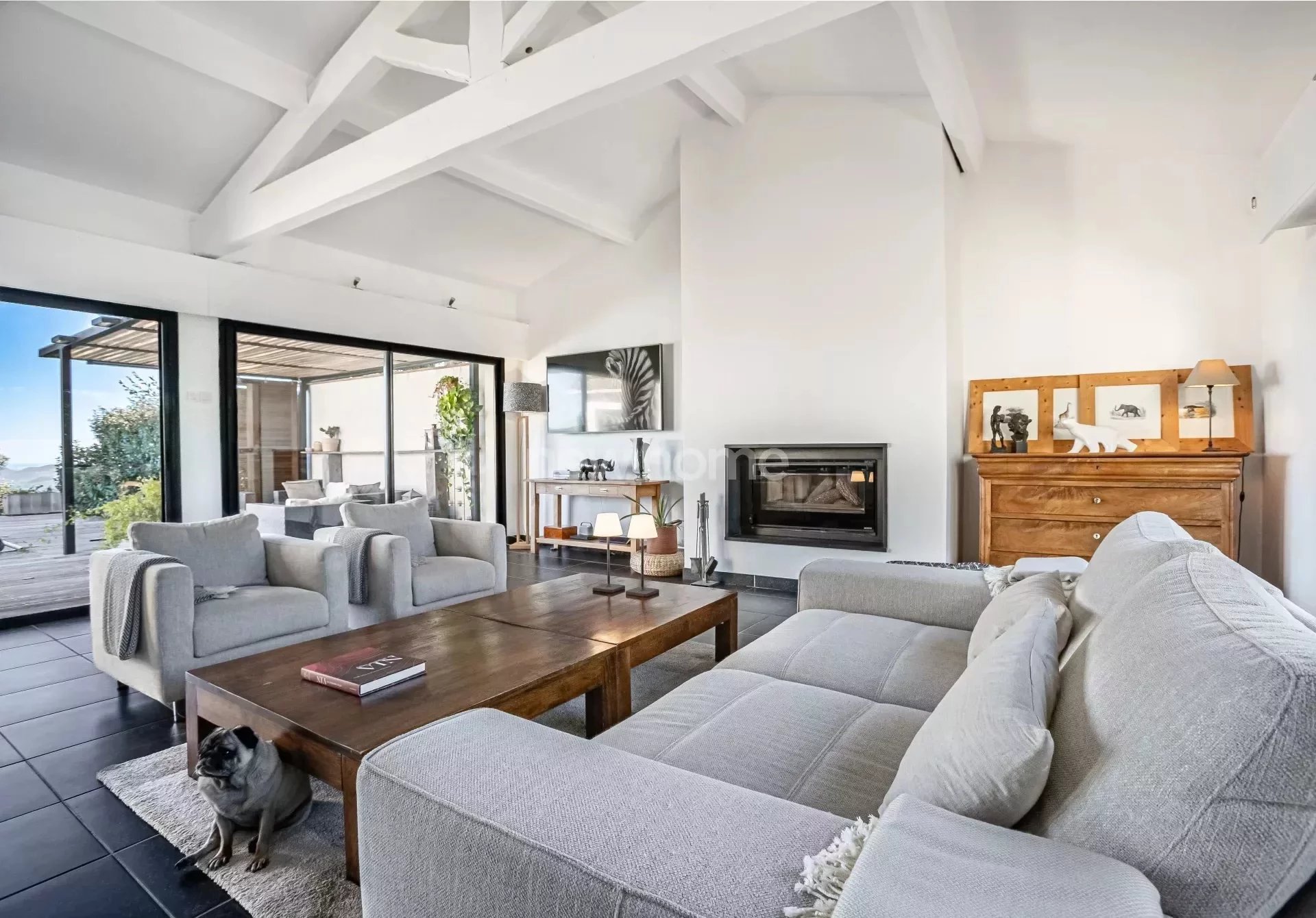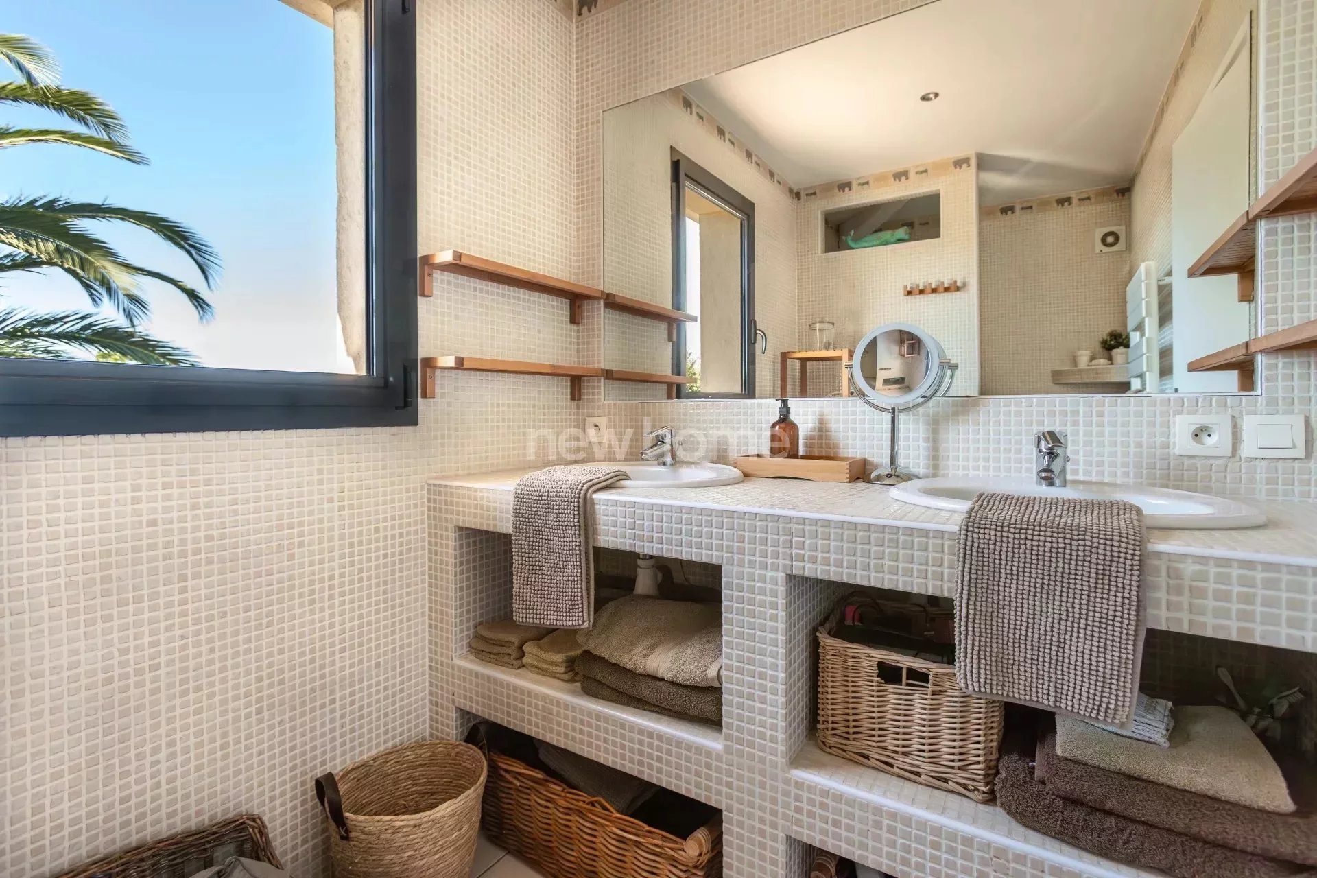 In the heart of a protected massif, in a residential estate with tennis courts, this luxurious architect-designed villa of 383m2 offers you a breathtaking view of the bay of Cannes and the Lerins islands.