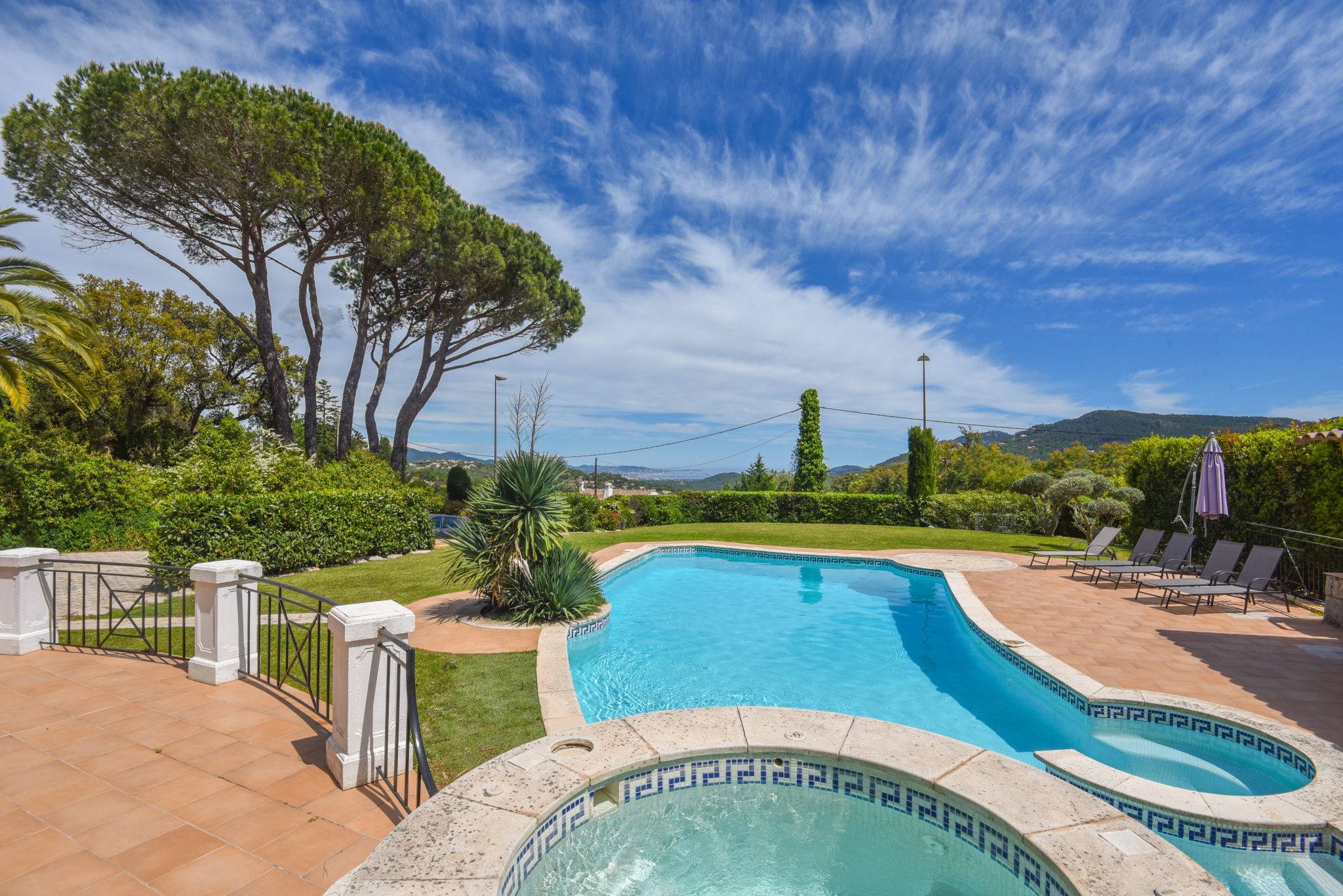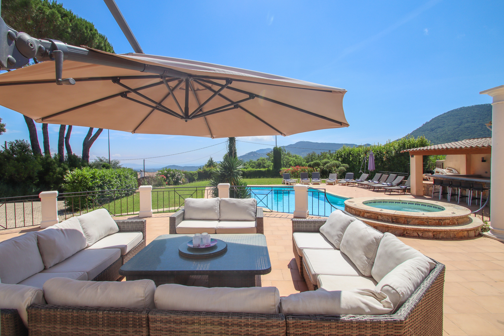 The outside area offers large terraces surrounding the swimming pool and its spa, beautiful views of the hills and the sea.