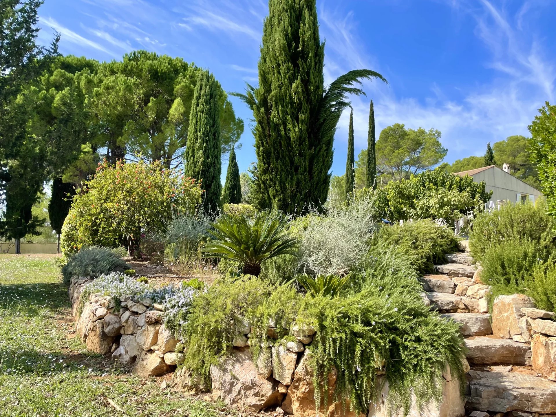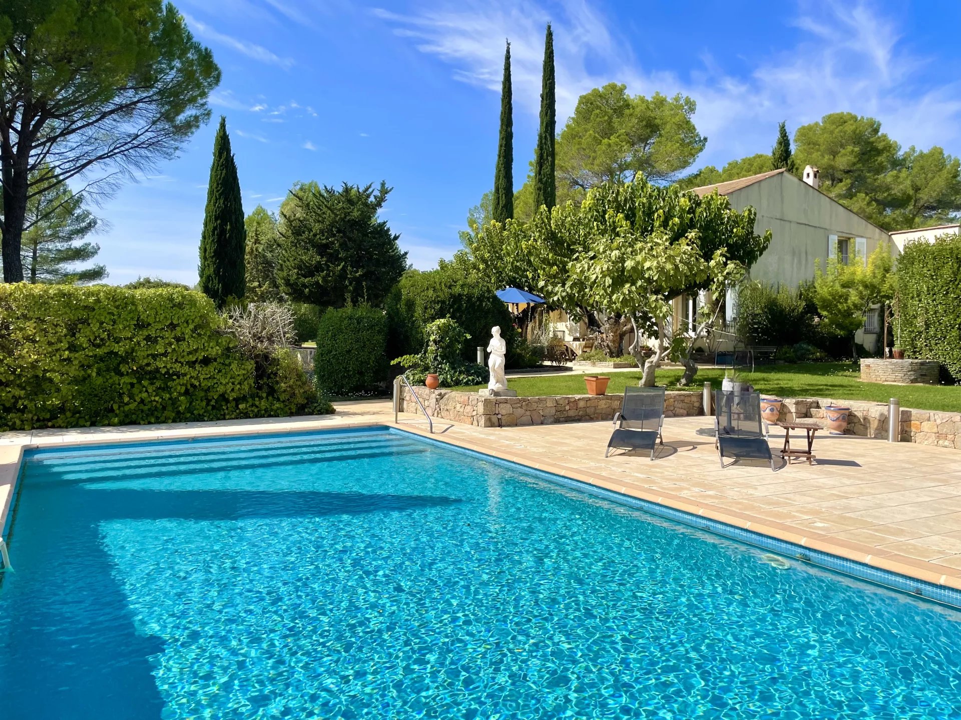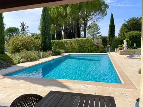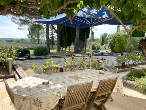 A peaceful setting with views of the beautiful Provencal landscape. There is a heated swimming pool that can be used year-round, a beautiful outdoor kitchen, and a boules court.