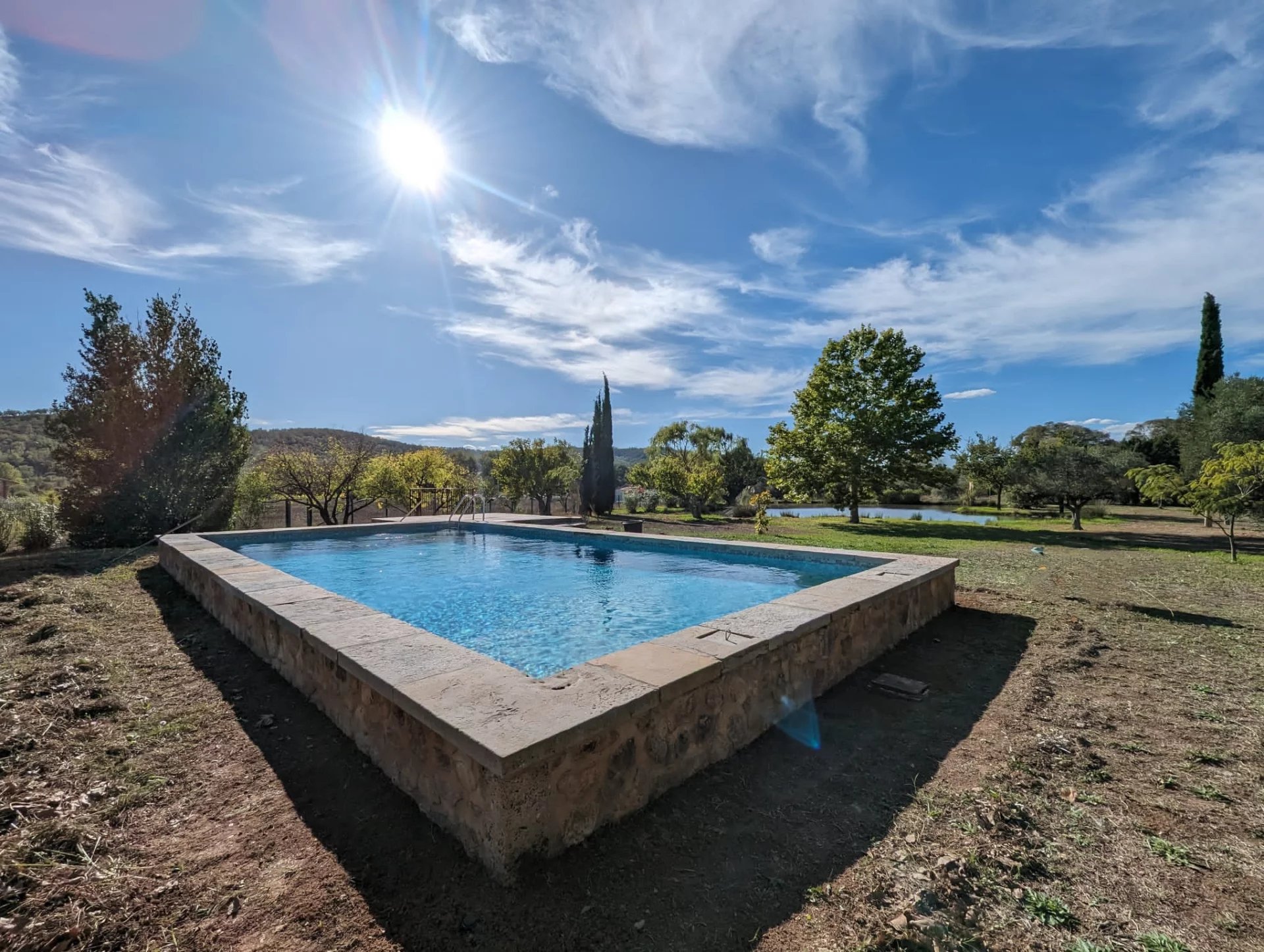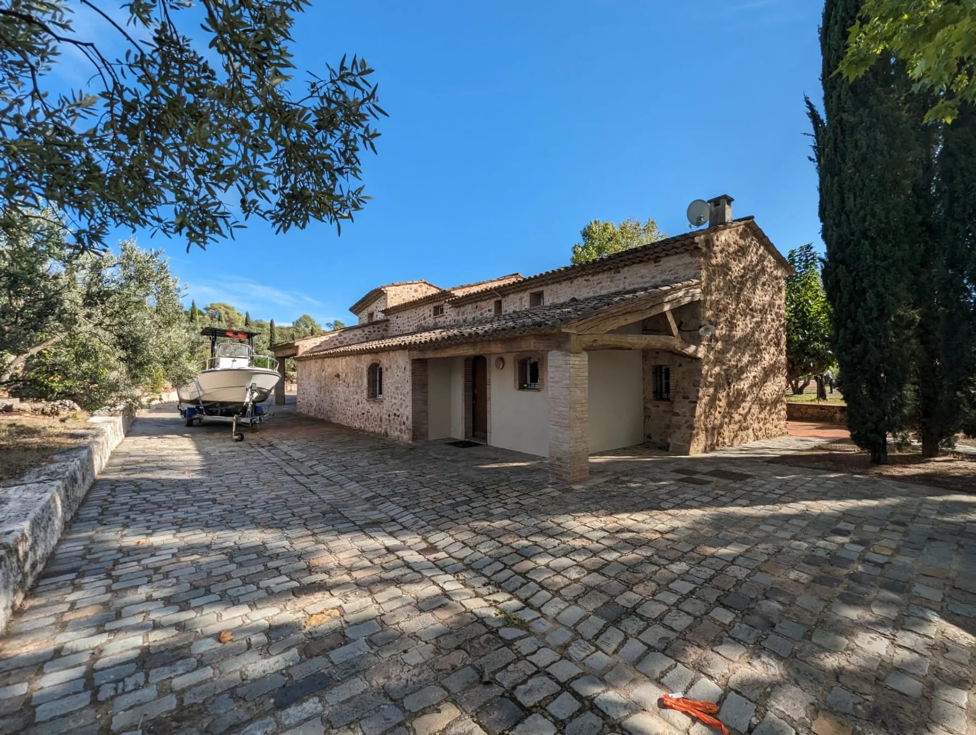 Superb stone property for sale in the town of Les Arcs with an olive grove, many trees and even a pond all on 9ha of almost flat land!