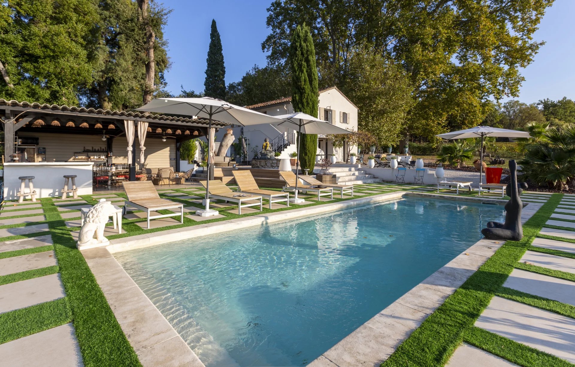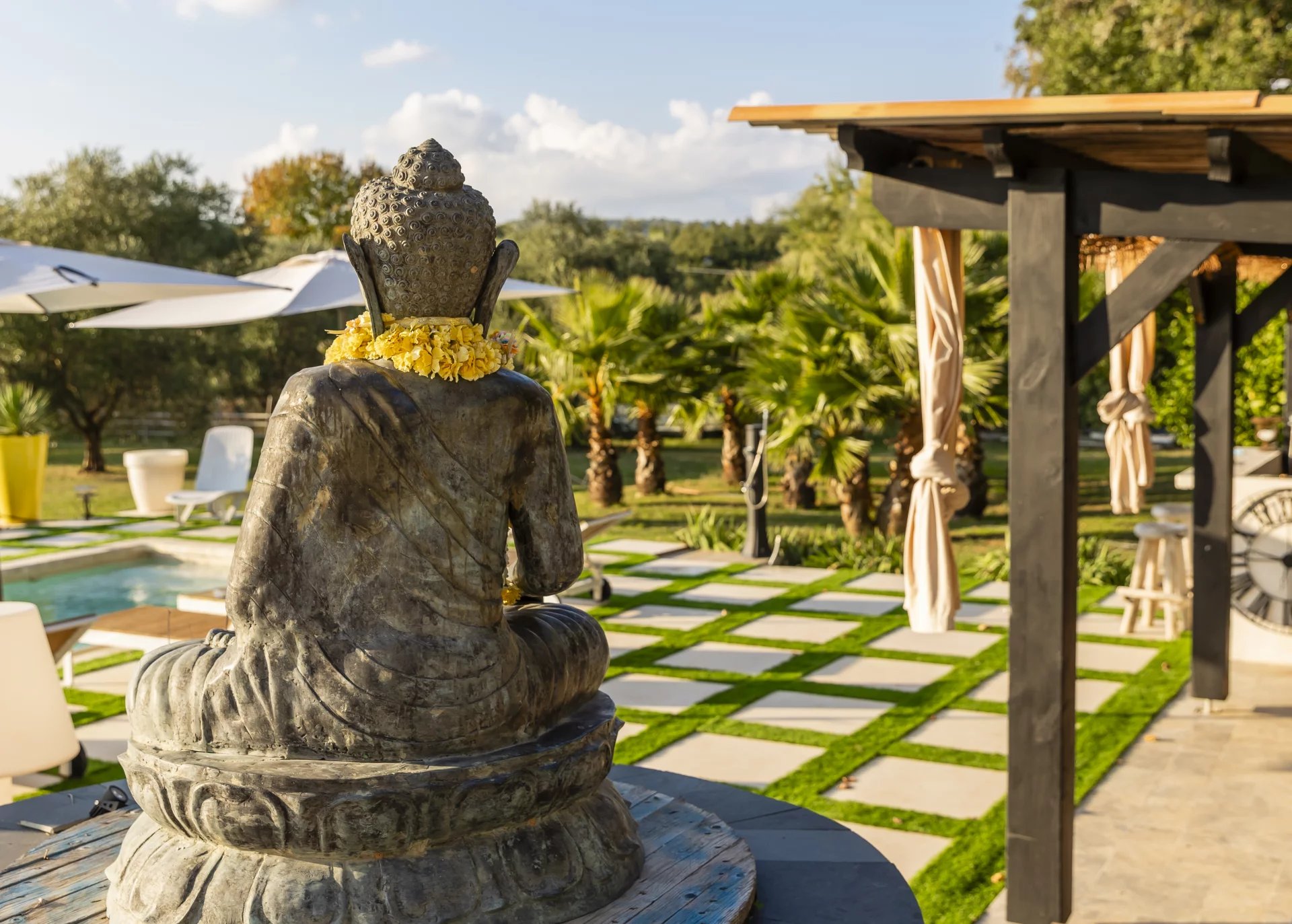 Outside, several terraces and relaxation areas, including a covered terrace with summer kitchen, opening onto the pool and its Asian-inspired lounging area.