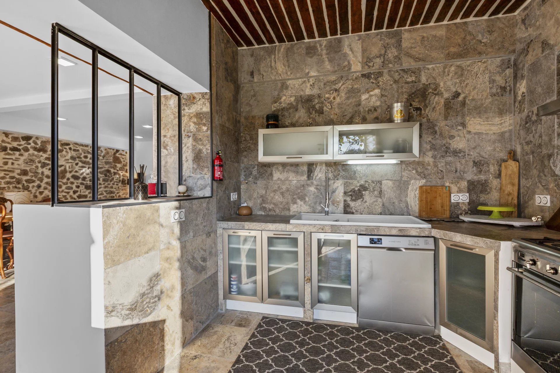 This authentic 18th magnanery, carefully restored with high-quality materials, offers around 300 m2 of living space on approximately 1.3 hectares of land, surrounded by vineyards and olive trees.