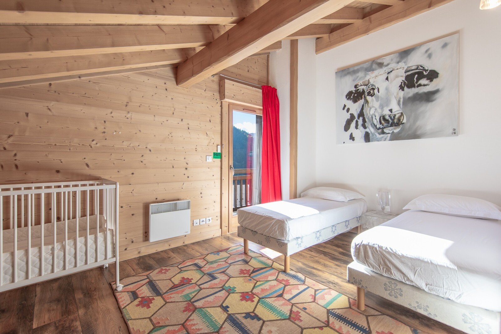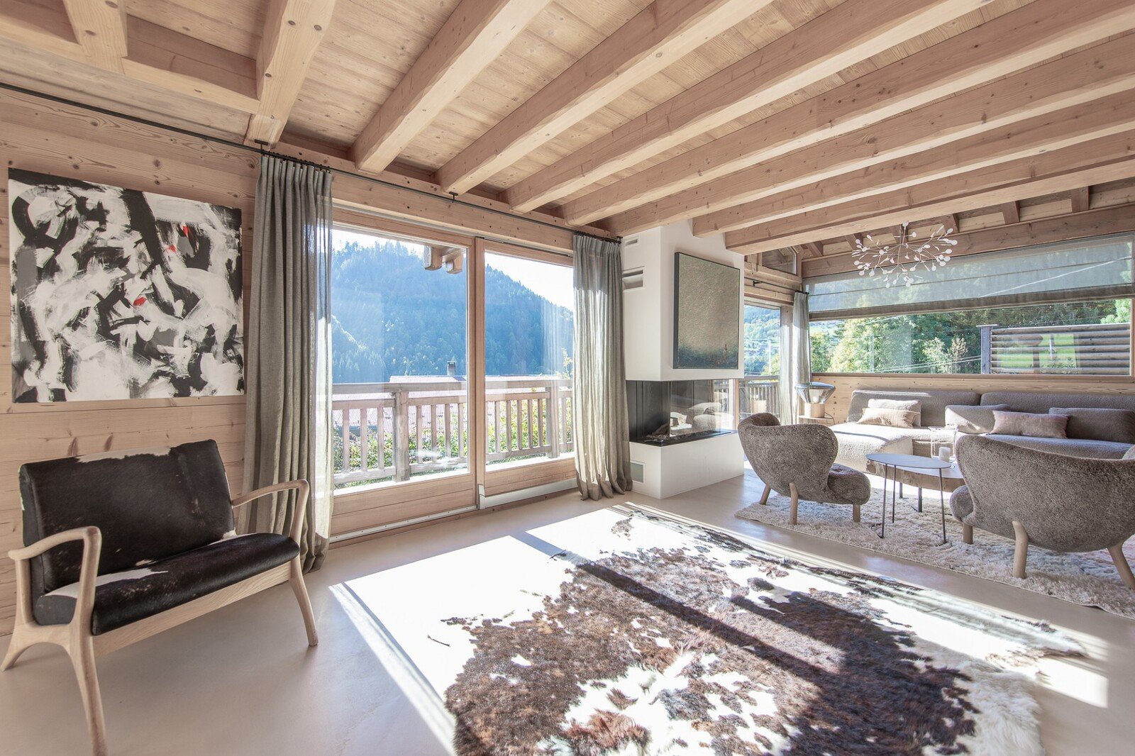 This bright, modern chalet is spread over three floors and offers breathtaking views of the Roc d’Enfer mountains in the distance.