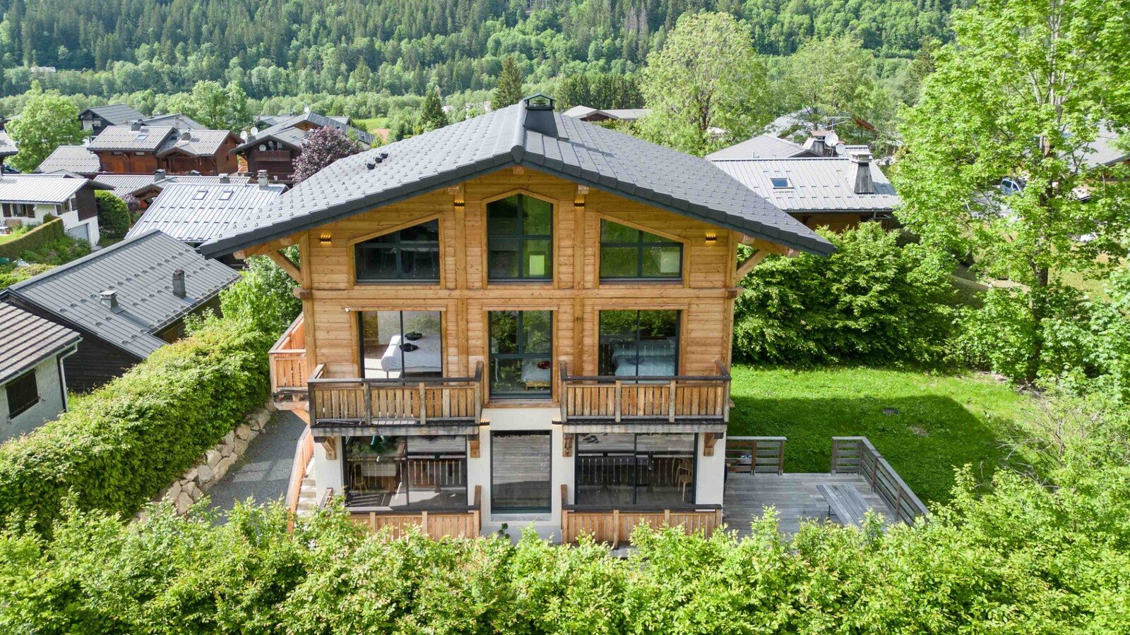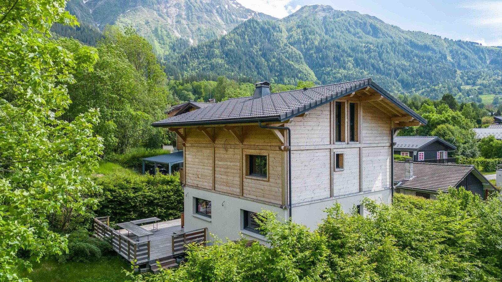 Discover this magnificent chalet, delivered at the end of 2021, located in the popular Les Granges area of Les Houches. With a total surface area of around 200 sqm, including 170 sqm of living space, this chalet offers spacious, comfortable living space on four levels.
